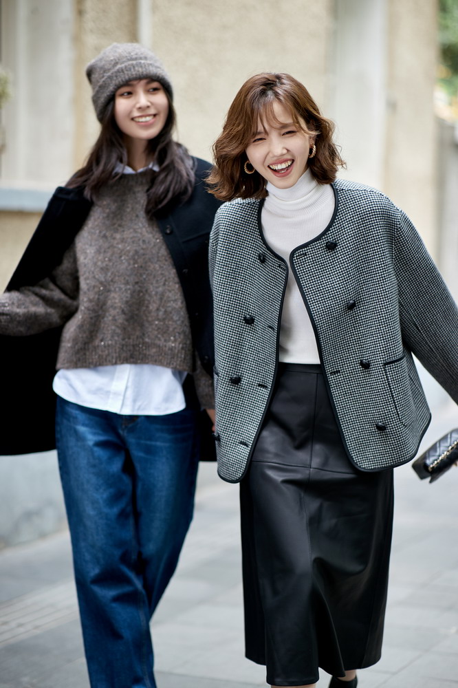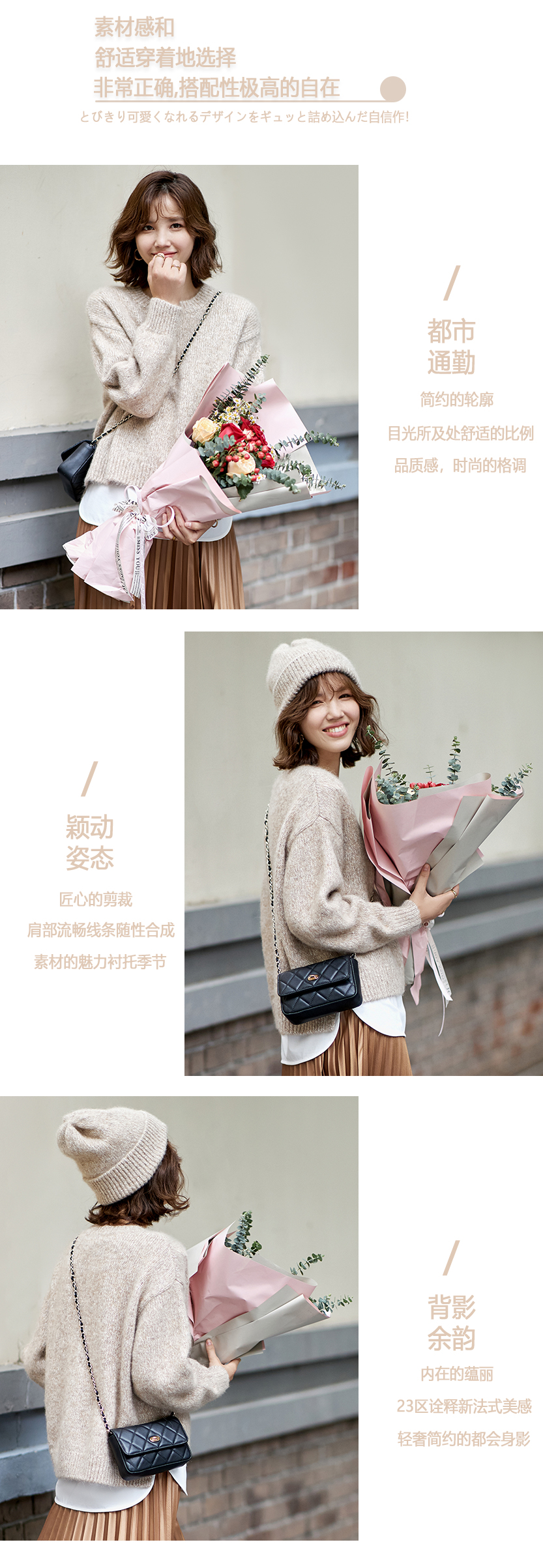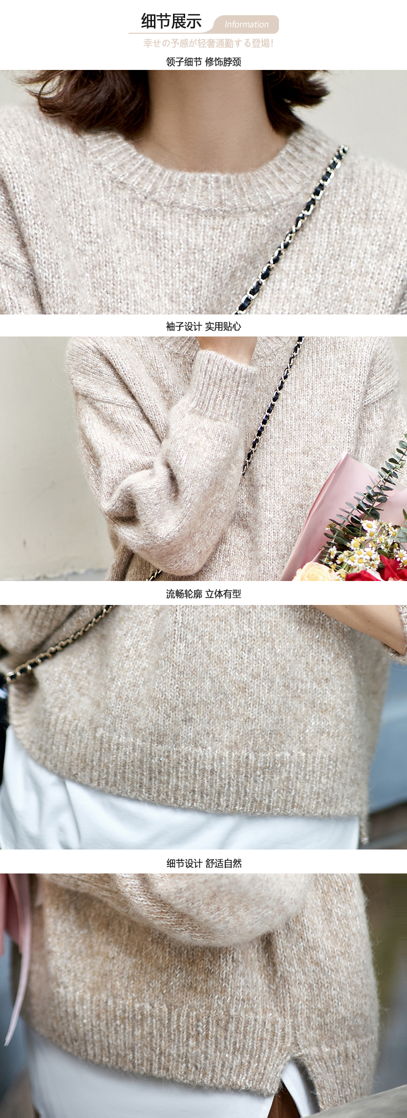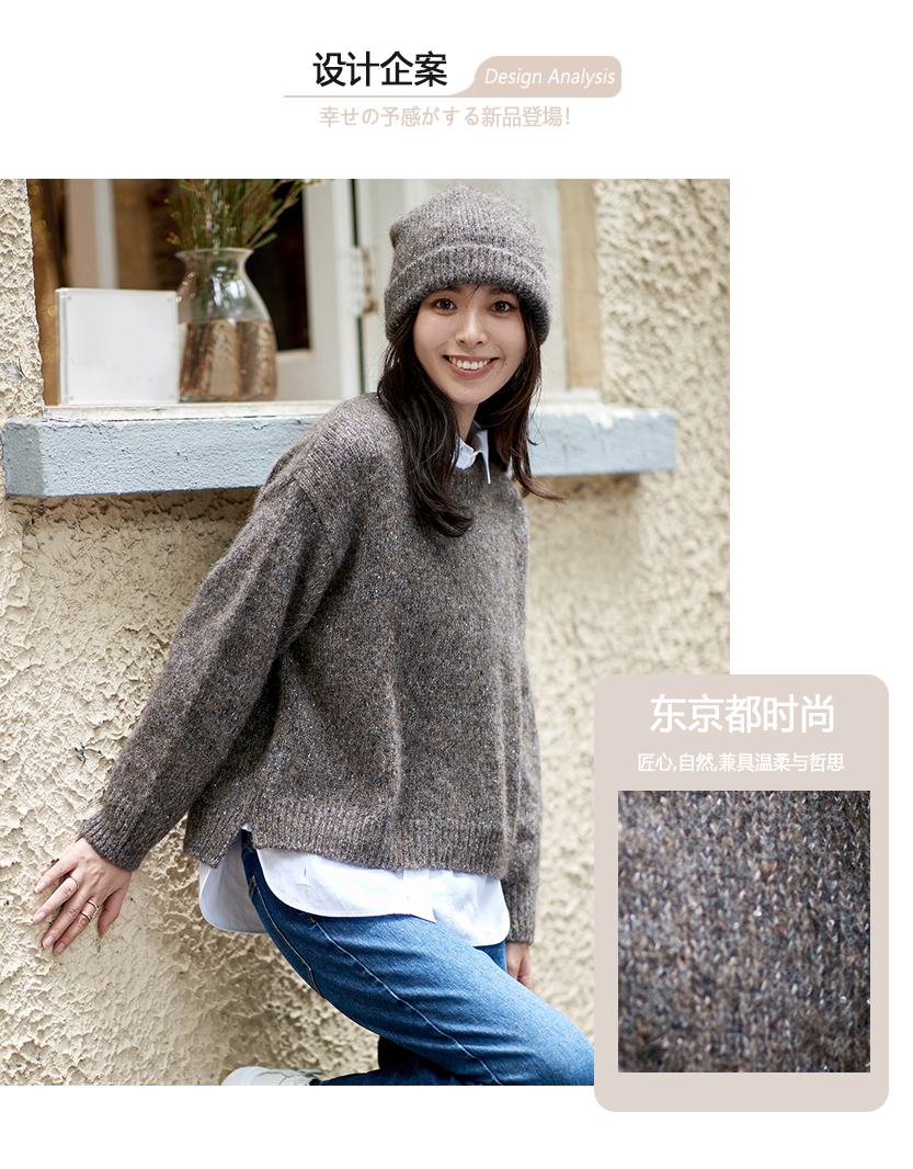 23区日系春季通勤羊驼毛羊毛混纺圆领套头毛衣针织毛衫商场同款