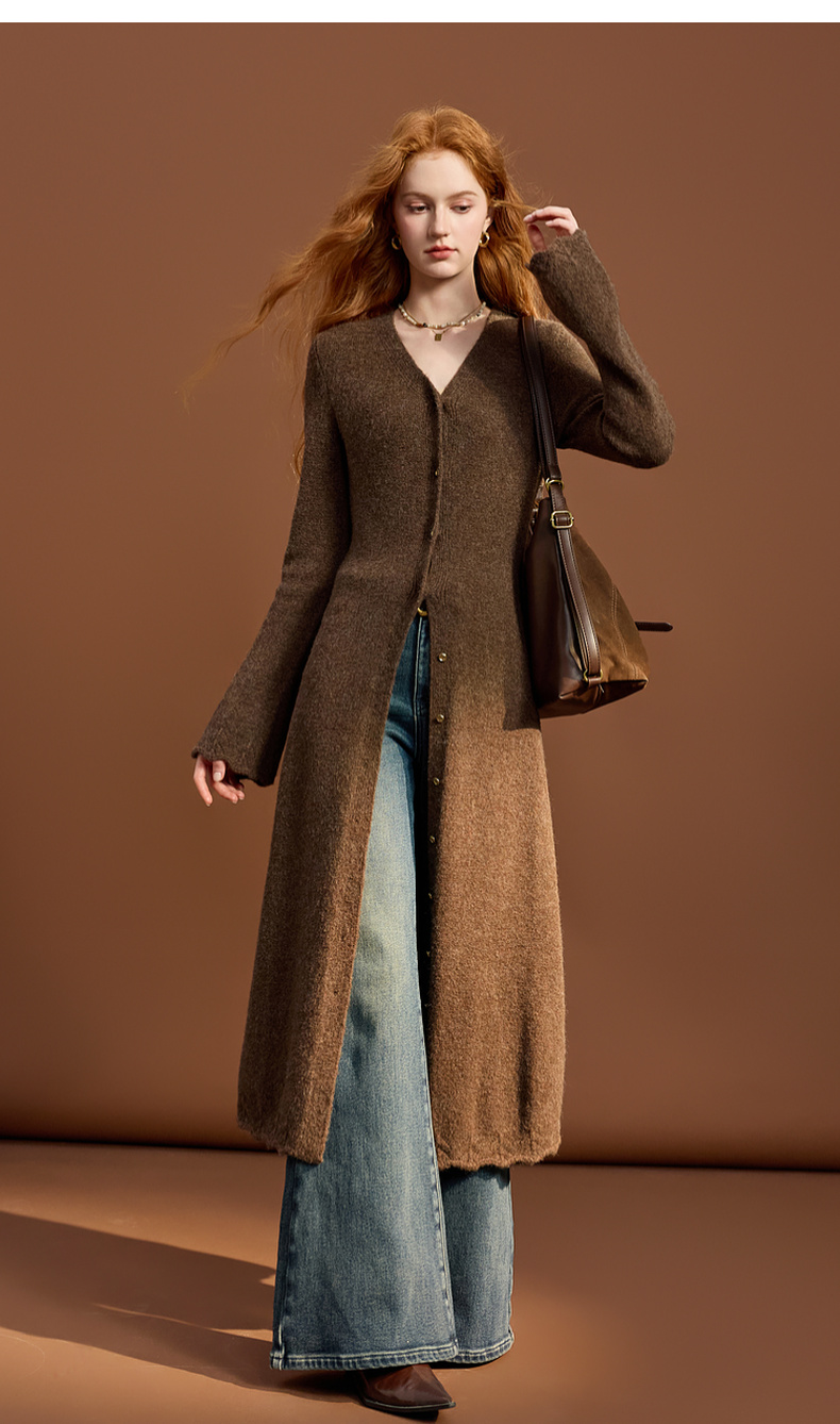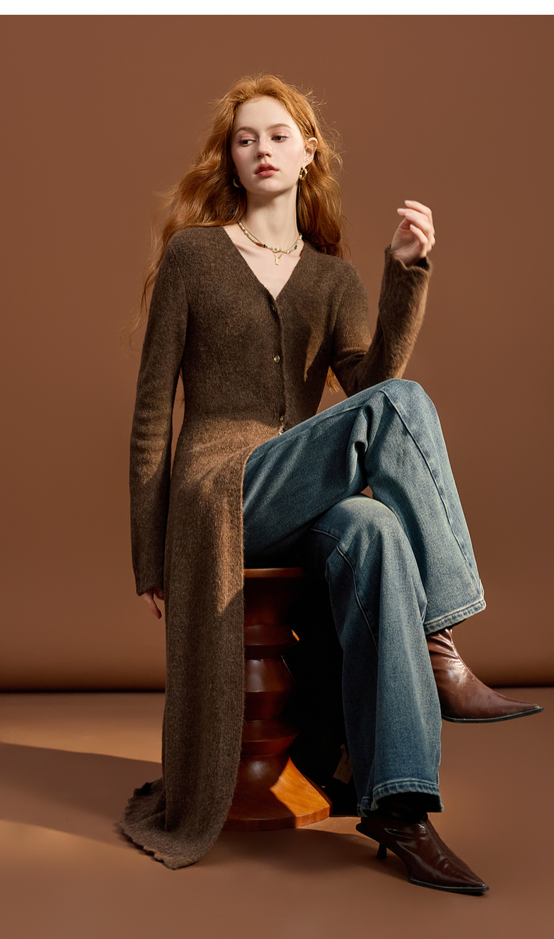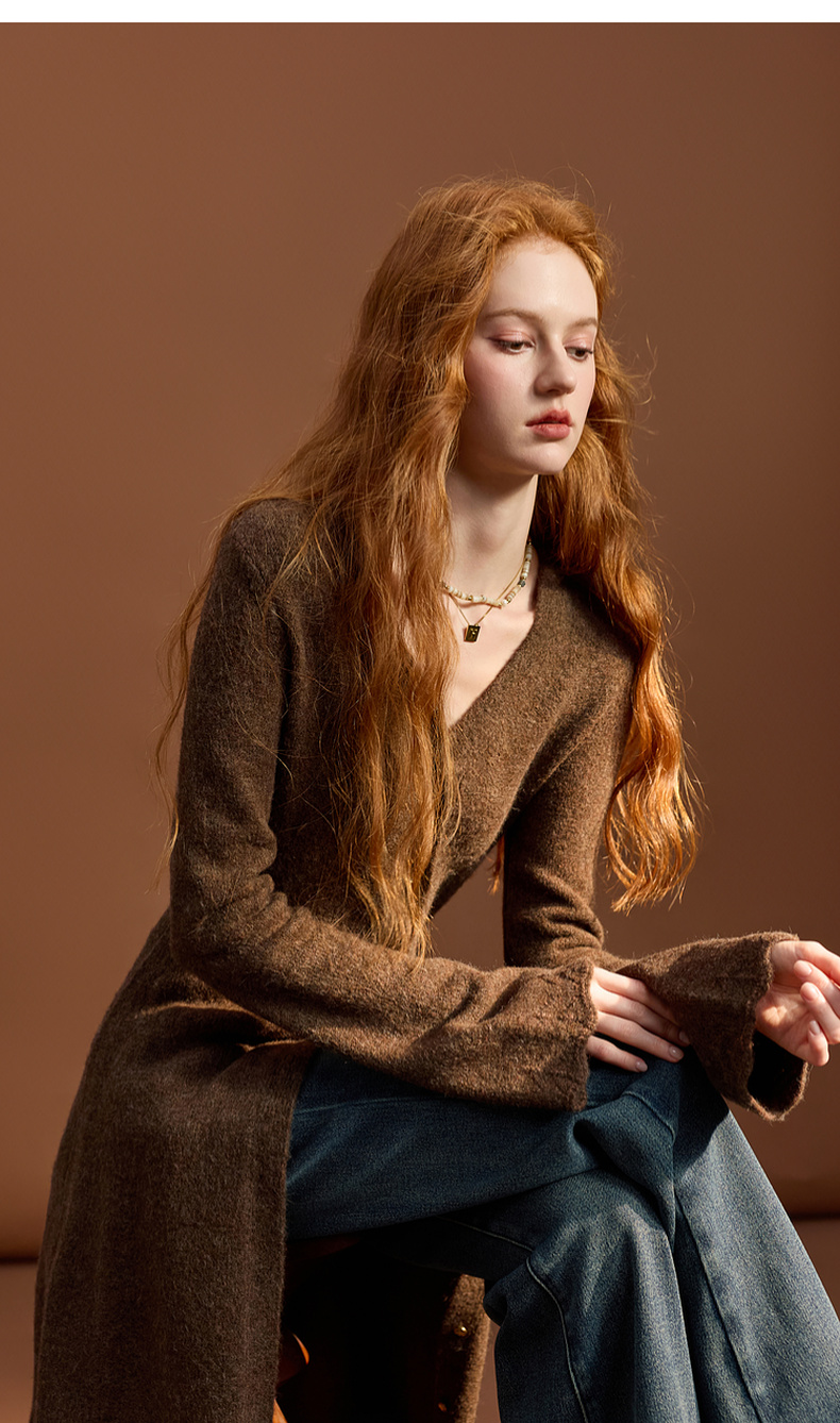 三彩2025冬季新款针织连衣裙V领修身A字裙长裙优雅M