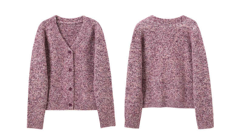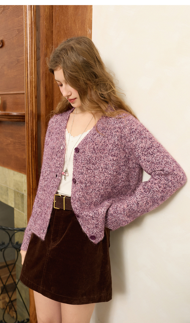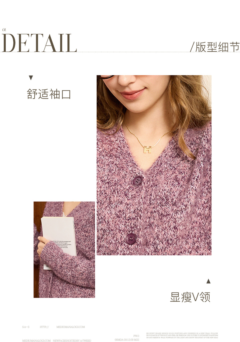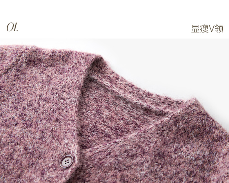 三彩2025冬季新款花纱针织衫V领毛衫宽松开衫外套长袖上衣M