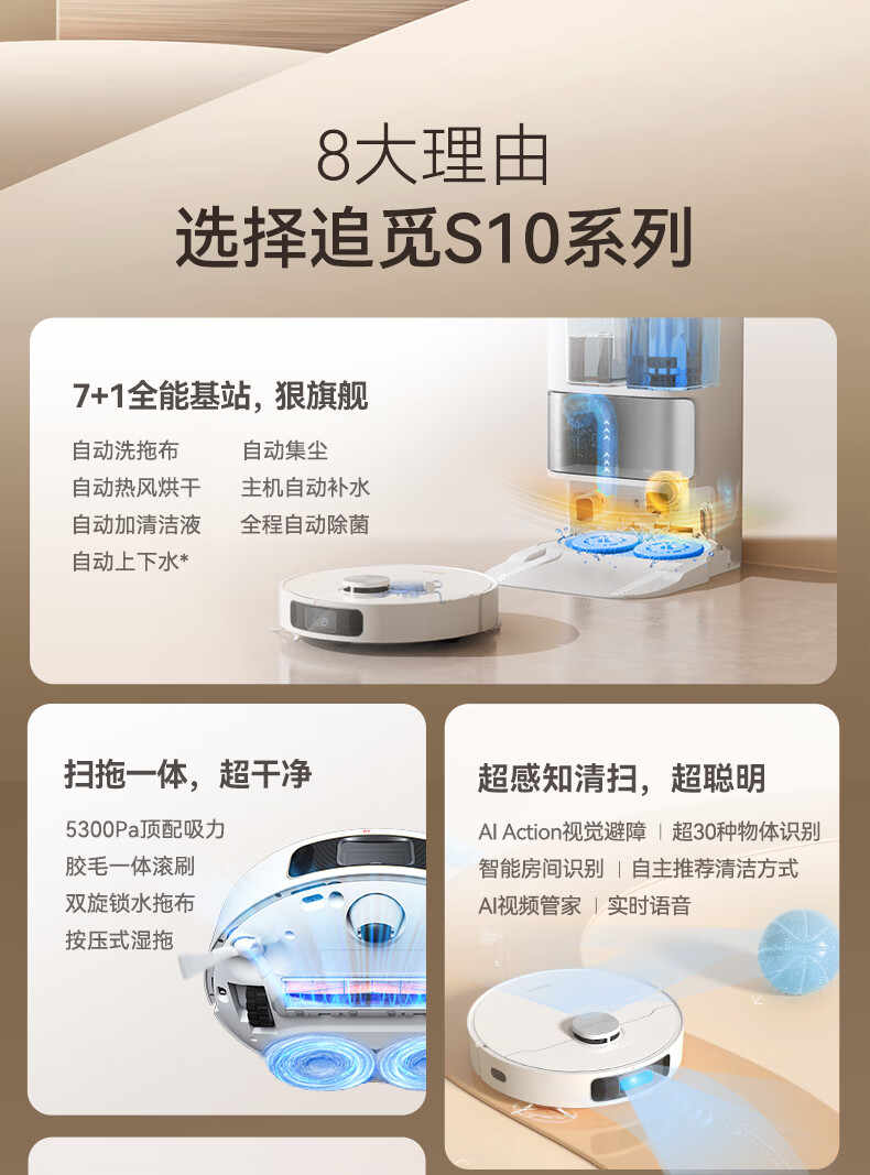 追觅全能扫地机器人扫拖一体机自清洁洗拖烘一体擦地机智能全自动清洗集尘上下水S10