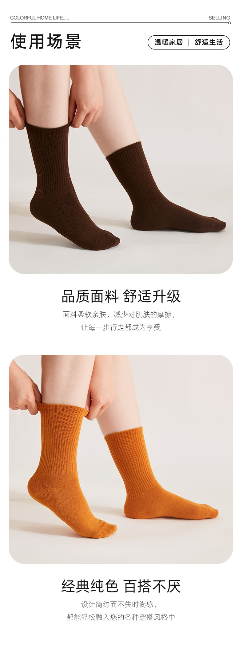 个性百搭透气吸汗简约纯色编织花纹袜子女士中筒袜