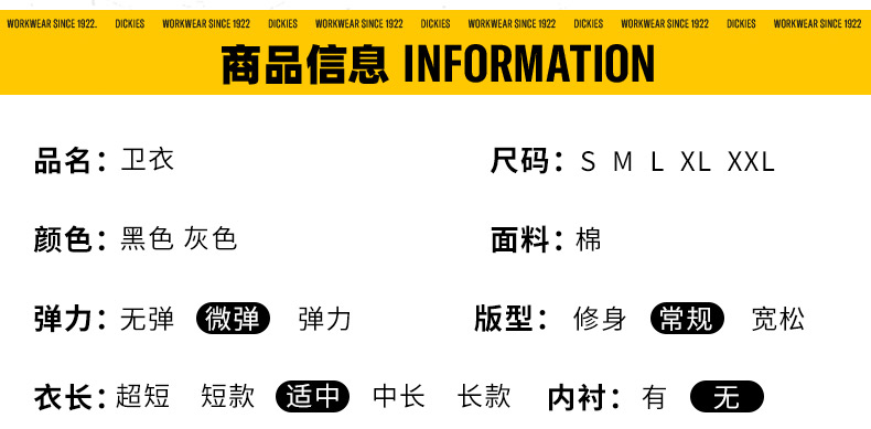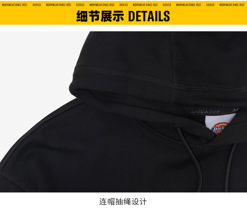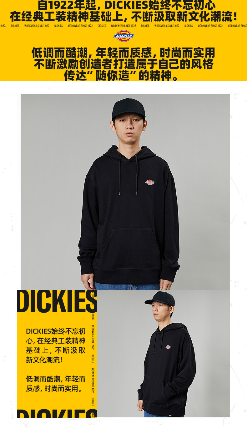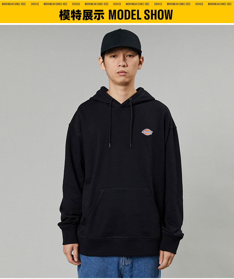 Dickieslogo贴布绣休闲连帽毛圈美式卫衣宽松 男女情侣连帽卫衣 DK013107