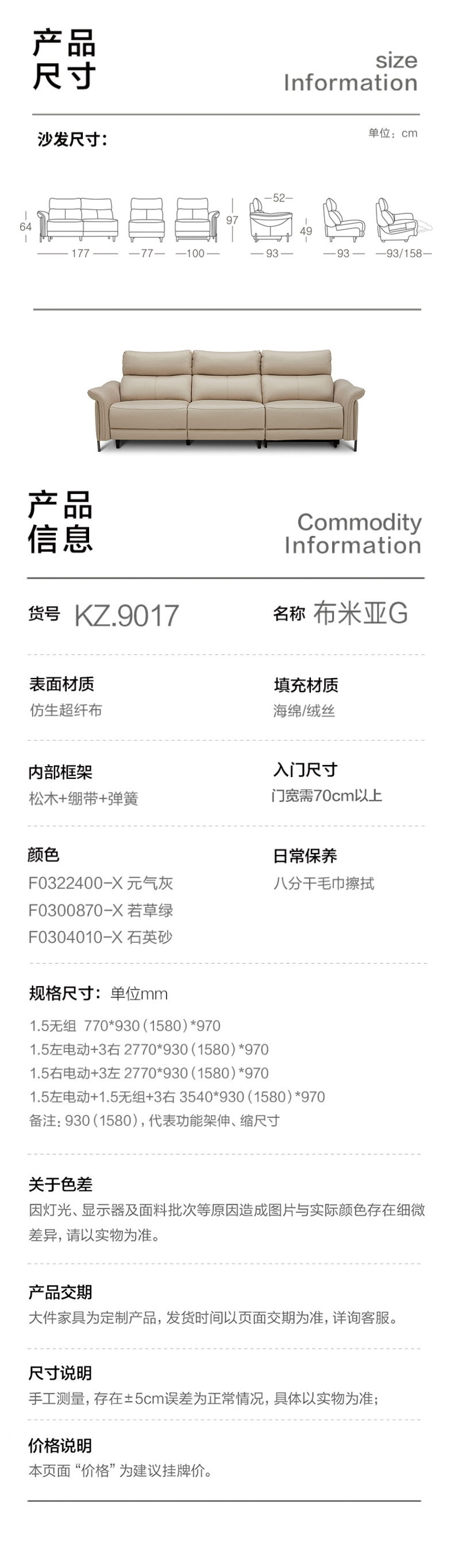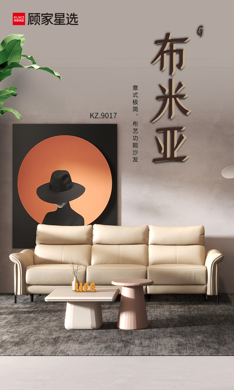 顾家家居整装 意式极简 布艺功能沙发 KZ.9017B布米亚G