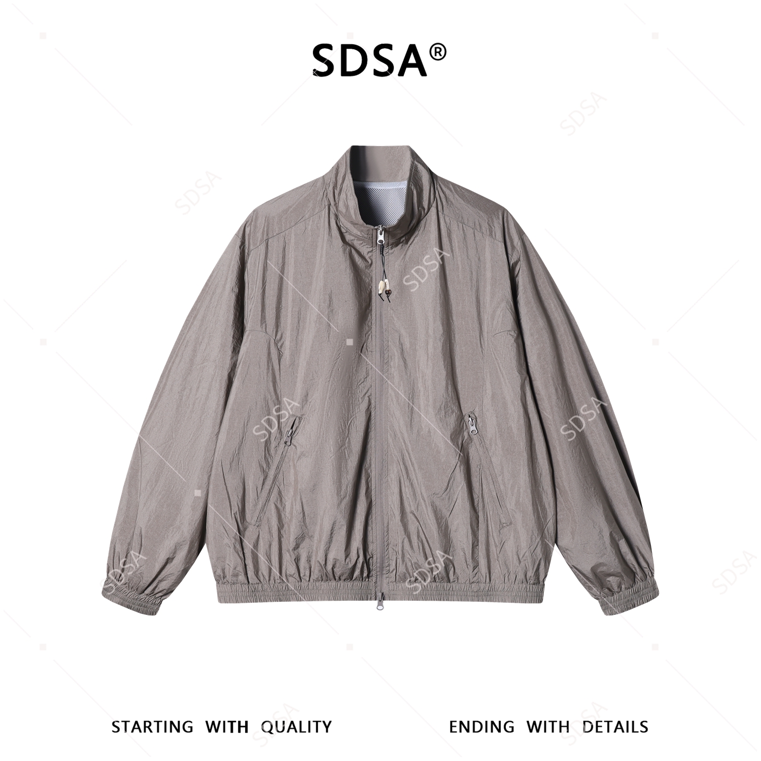 SDSA男装2026新款高贵轻奢简约纯色拉链立领夹克外套拉链口袋百搭