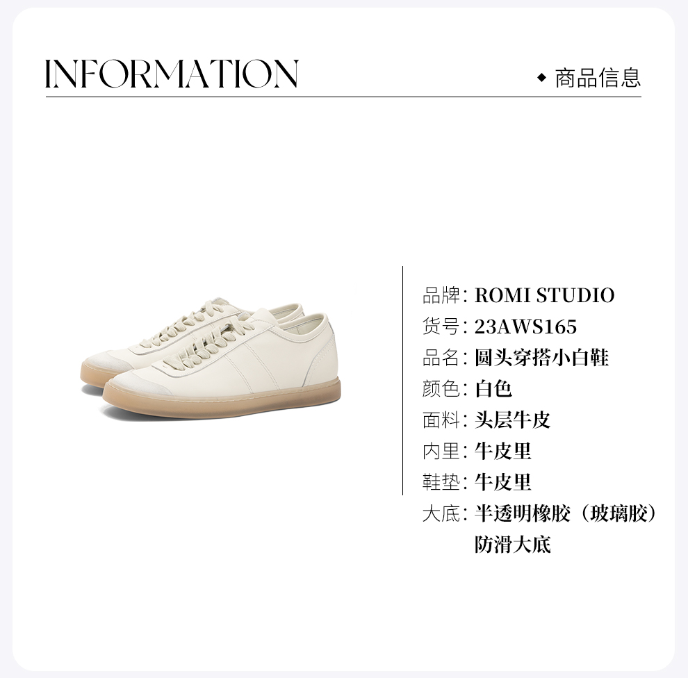 ROMI STUDIO“quiet luxury”头层牛方圆头腔调穿搭小白鞋23AWS165