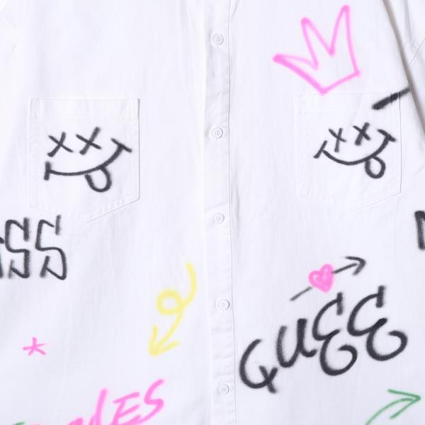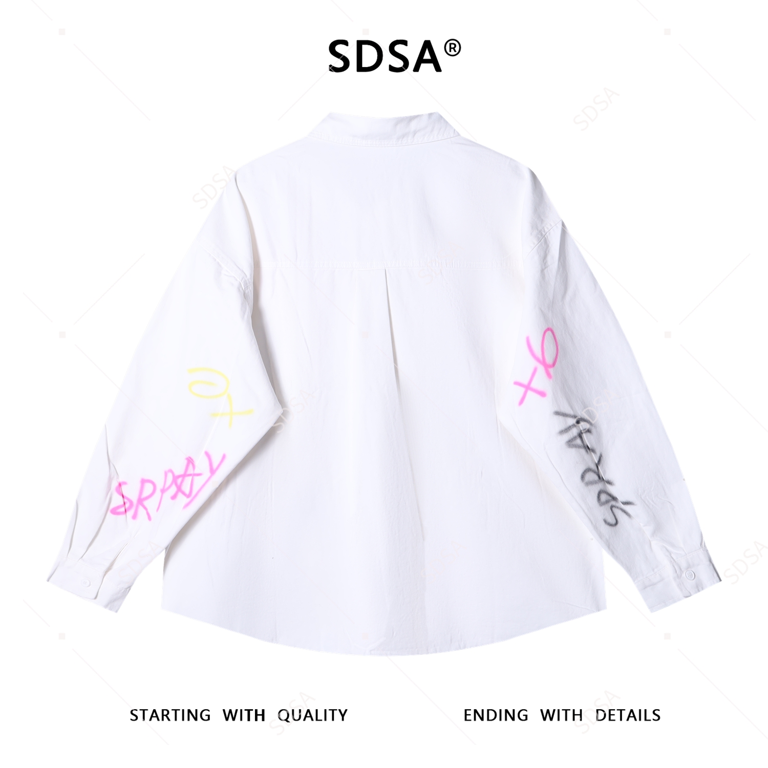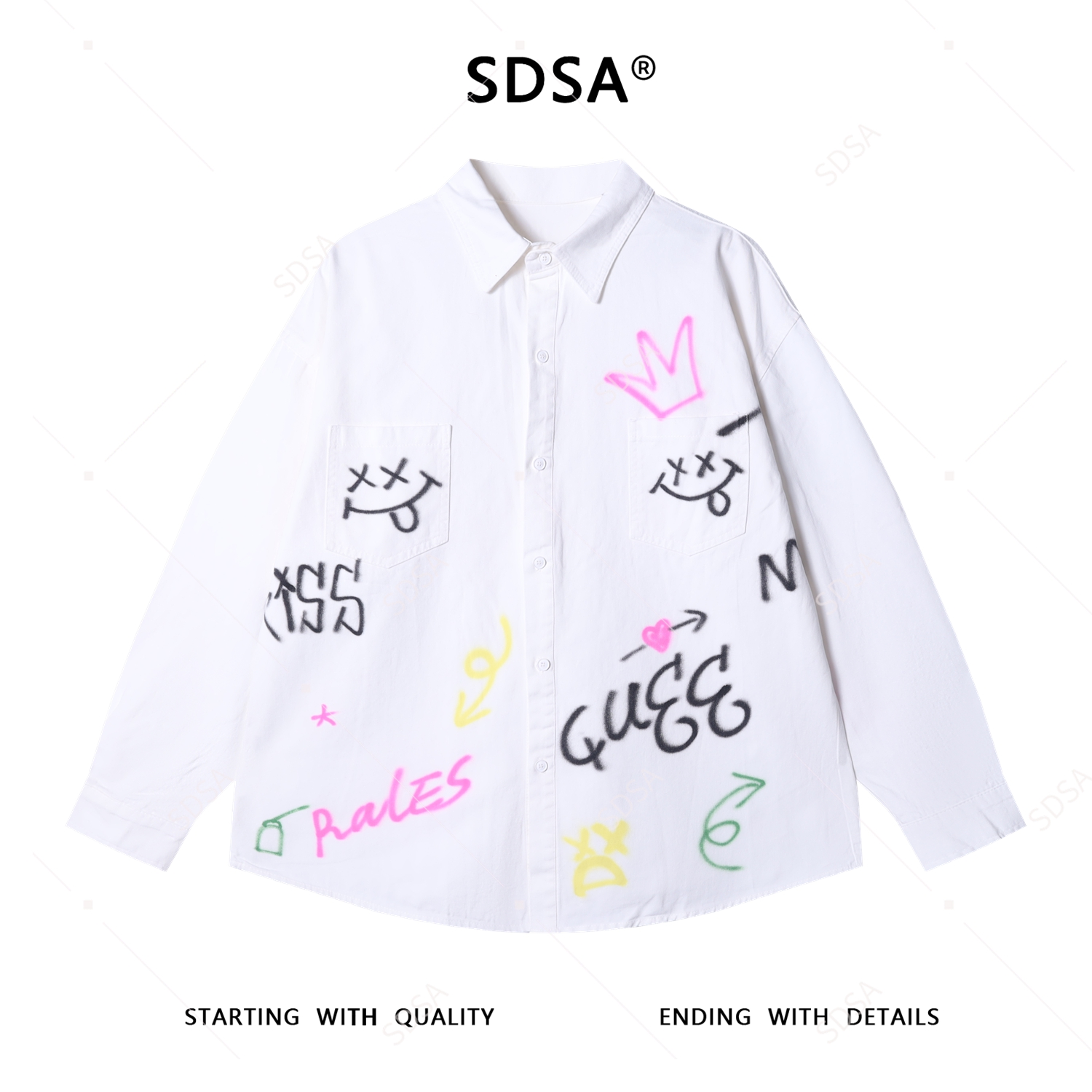 SDSA男士秋冬新款痞帅男装潮牌手绘涂鸦字母翻领长袖衬衫百搭衬衣