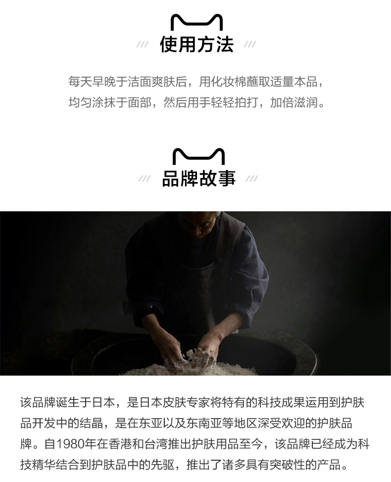 1.护肤品成分各有不同,敏感性肌肤的人士请先在耳后进行测试后再使用。