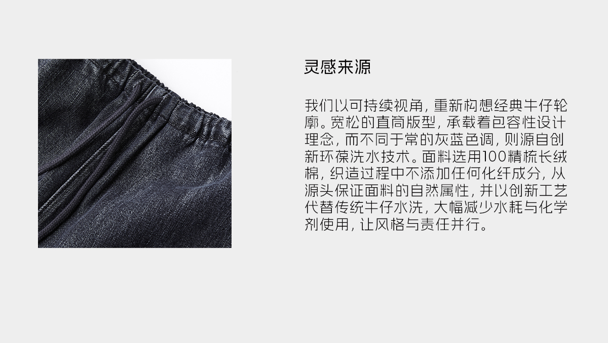 ROMI STUDIO“原生匠心”精梳长绒棉梭织环保雾面牛仔裤 RWCAX06212
