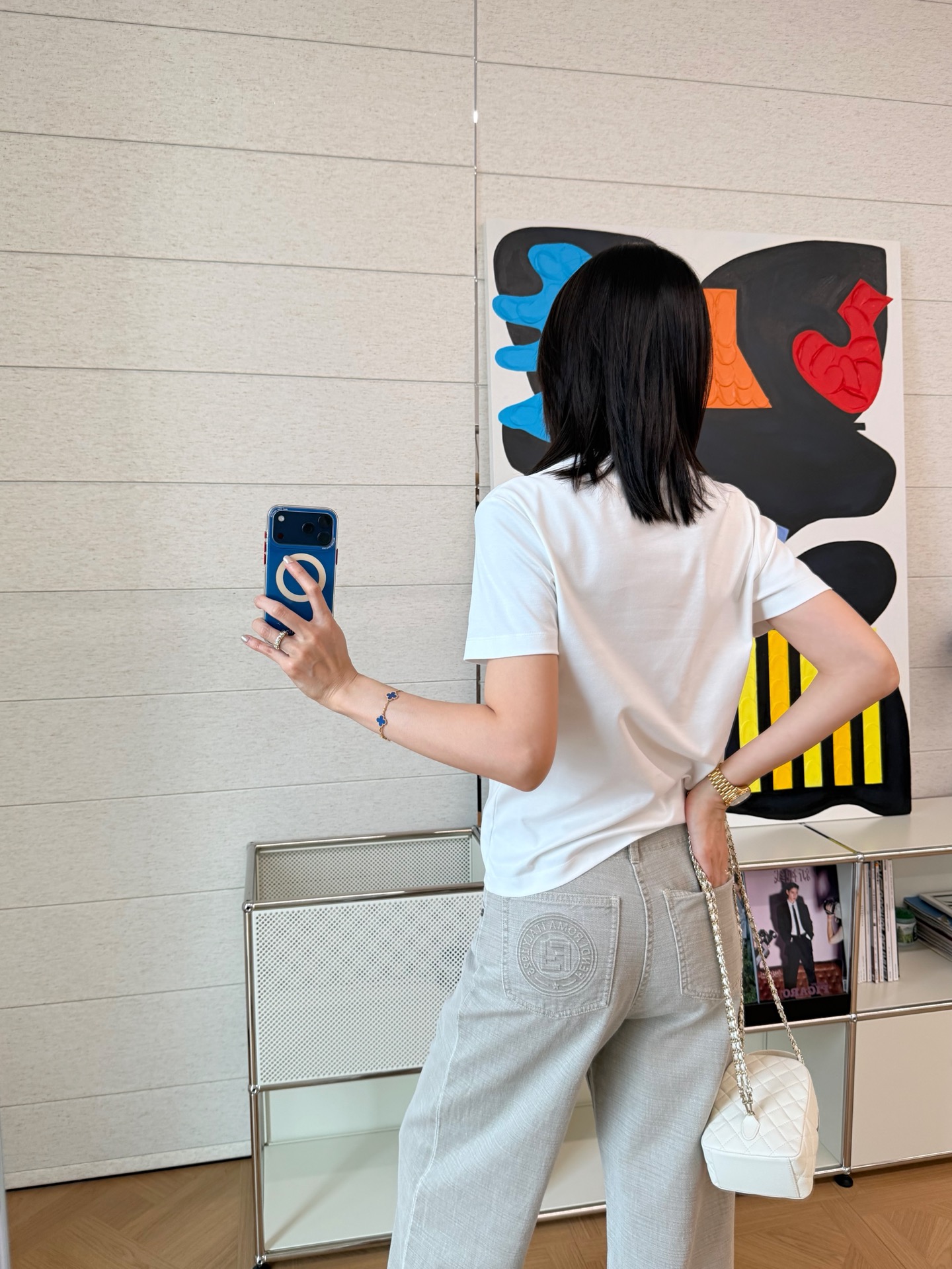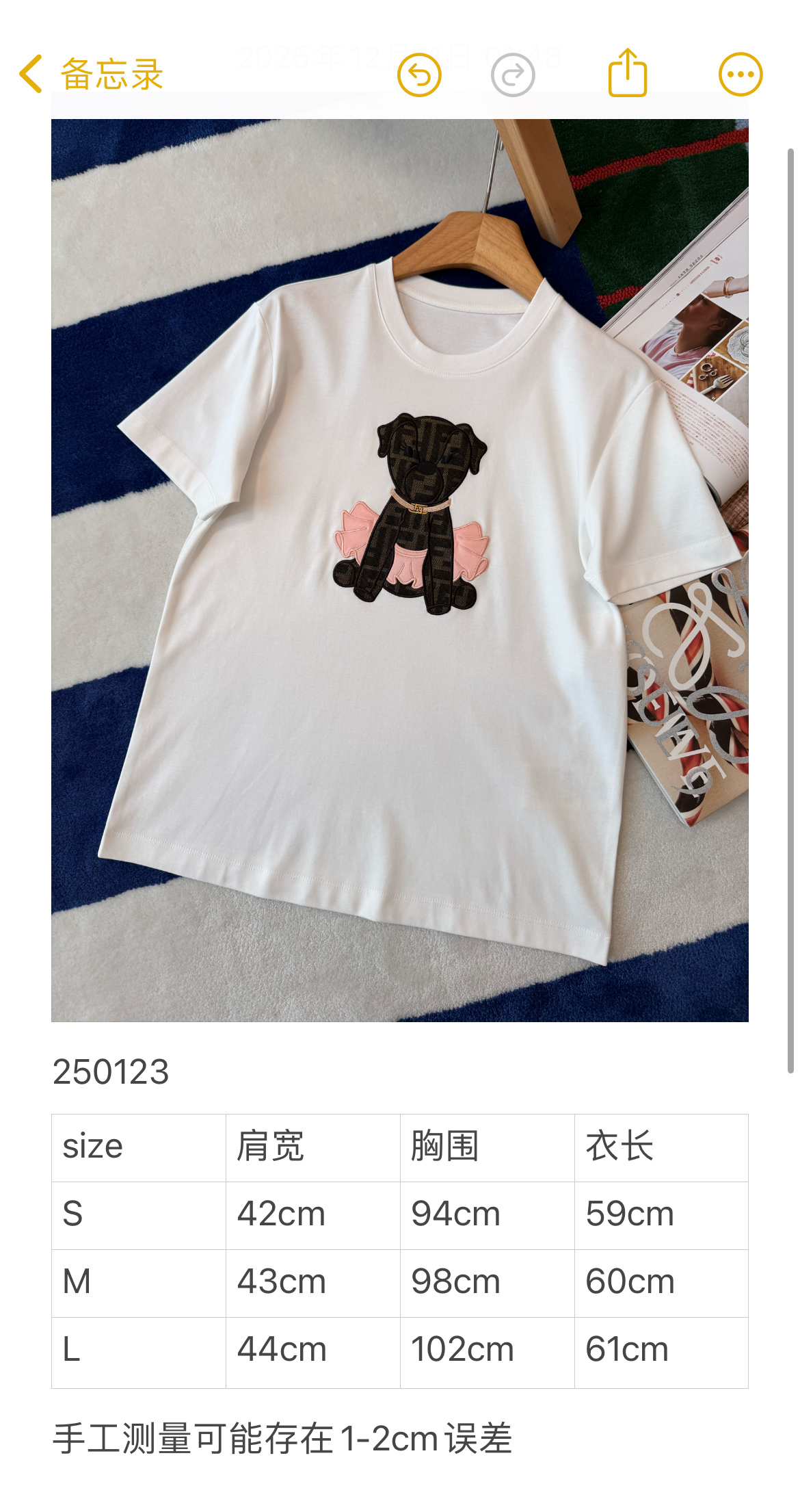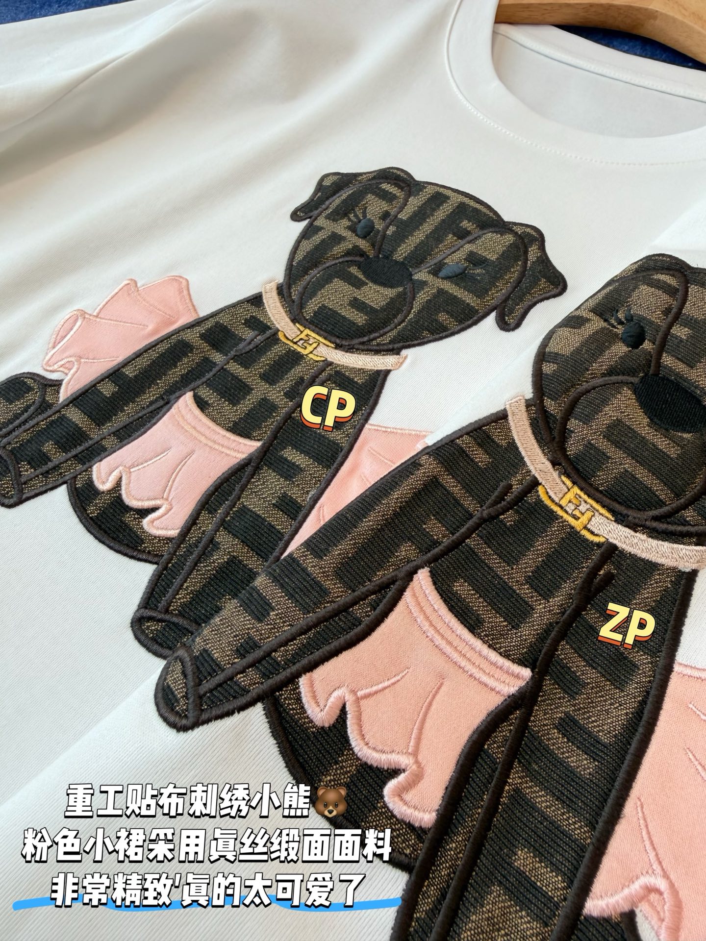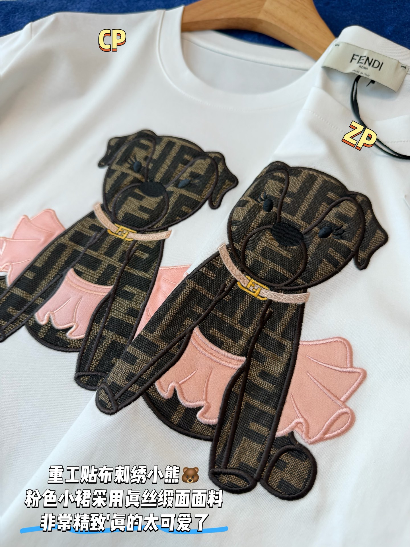 【现货发售】爆款限定T恤🔥全新上线‼️老花小狗章仔白T 恤, 采用柔软的棉质面料🔝特选耐穿抗磨的纯棉面料,穿起来舒服不拘束❕❕质感绝绝子🤩章仔做工非常复杂细致✨ FF小狗作为视觉焦点🔜 既保留了品牌辨识度,又不会像满logo款那样张扬😉完美诠释了“低调奢华的可爱感”🤩打造日常随性风范〰️为衣橱注入新意☑️必入款💕常规版型,码数SML