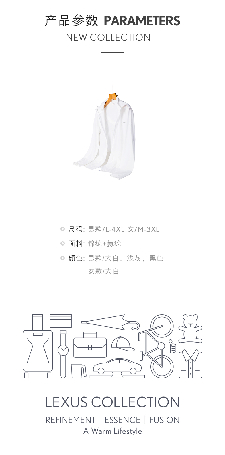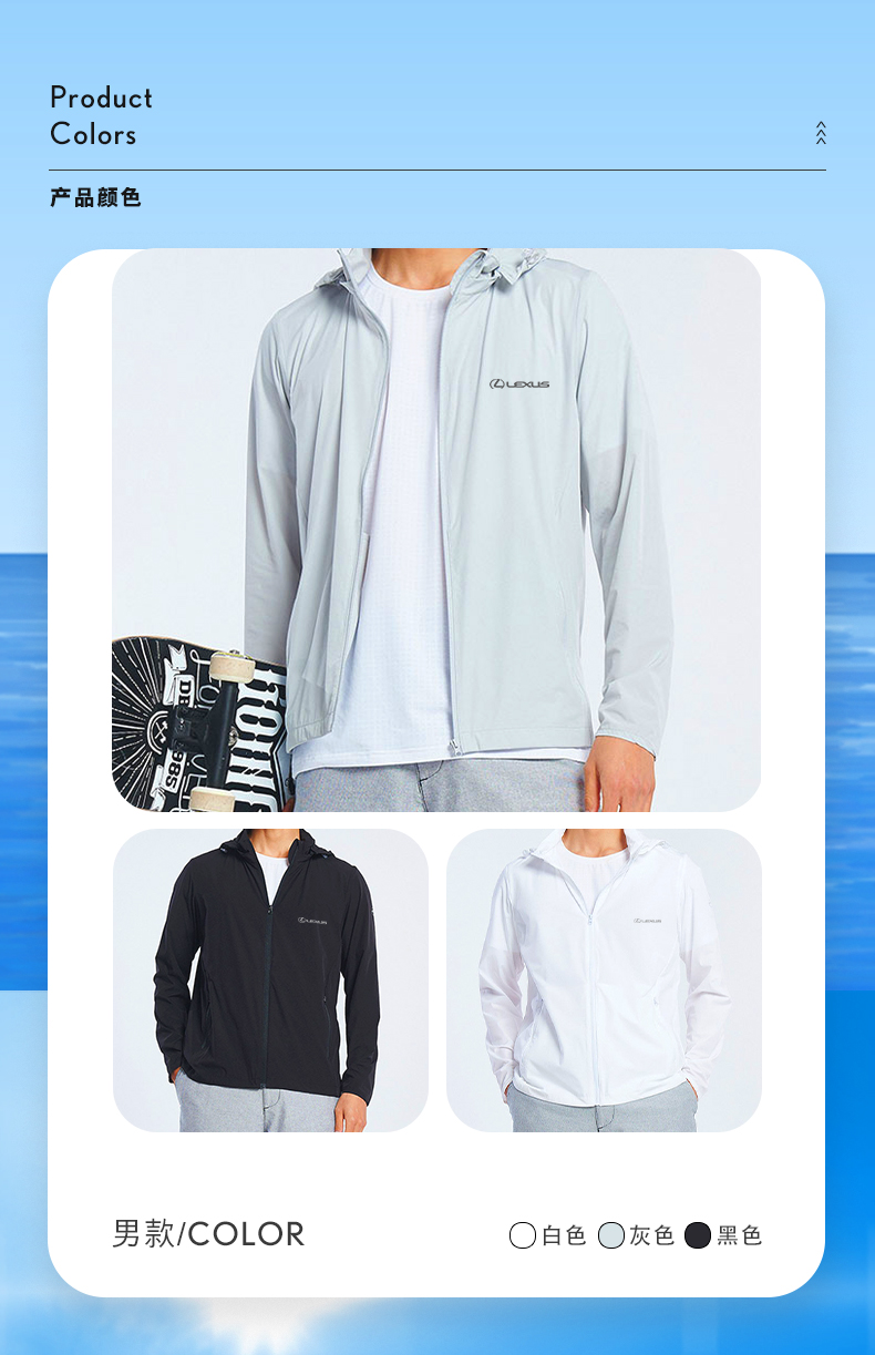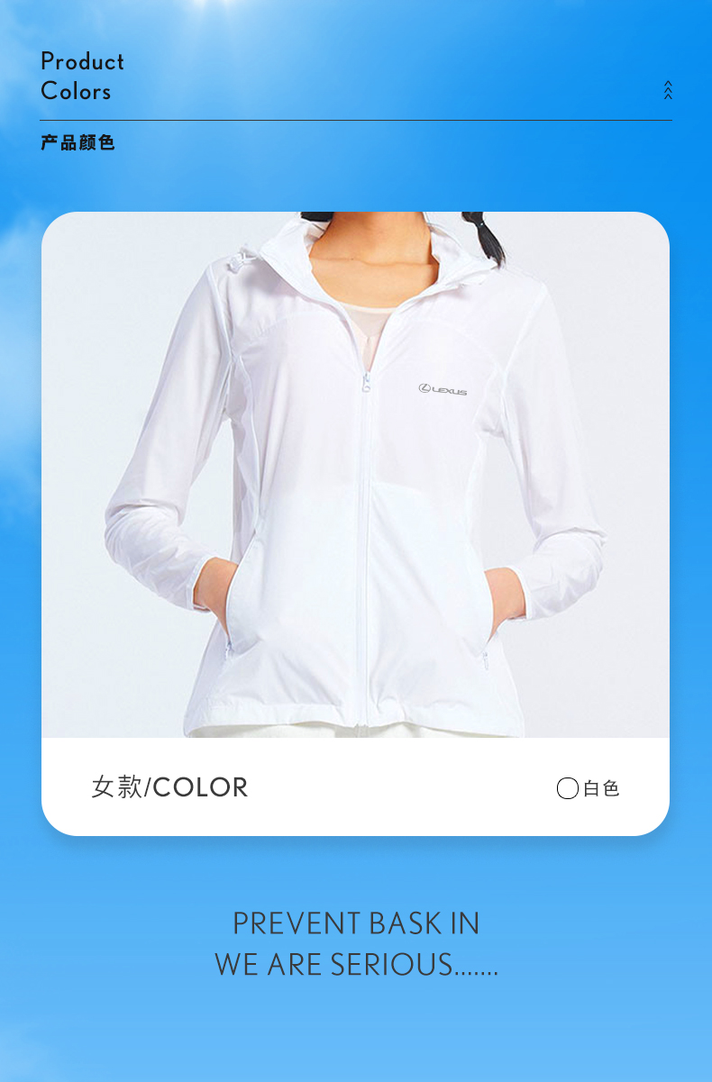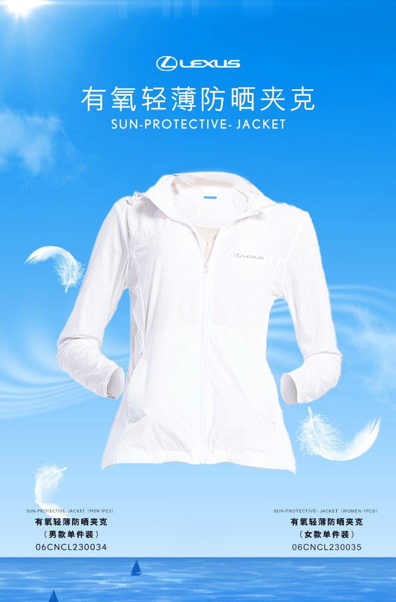 有氧轻薄防晒夹克,女款白色,男款多色可选