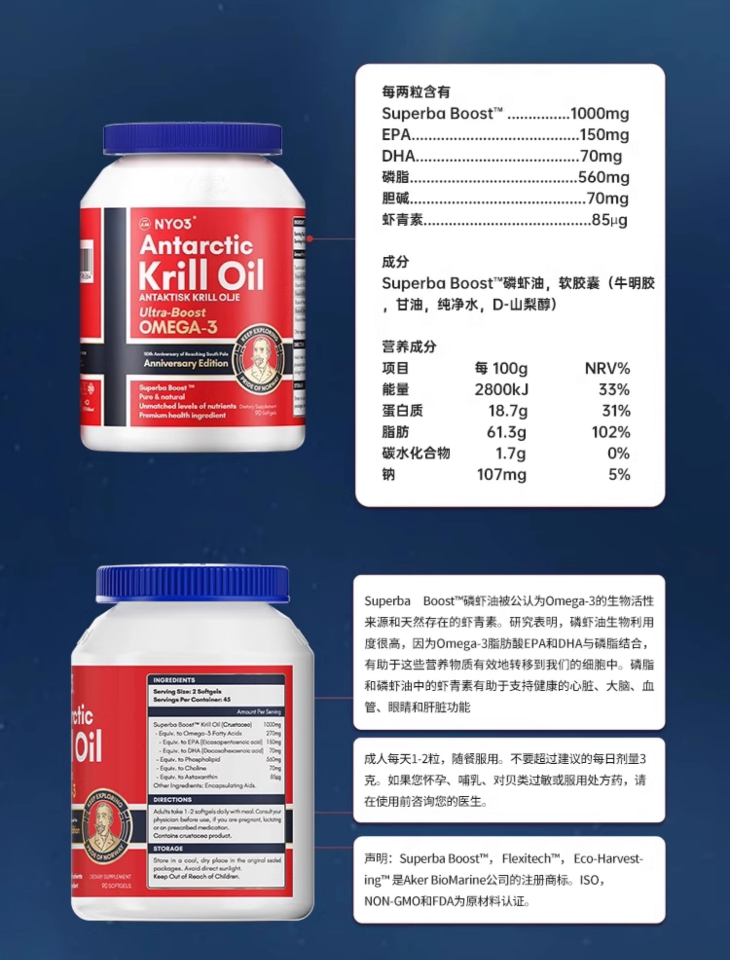 NYO3 挪威进口纯南极阿蒙森磷虾油90粒59磷脂深海鱼油升级omega3