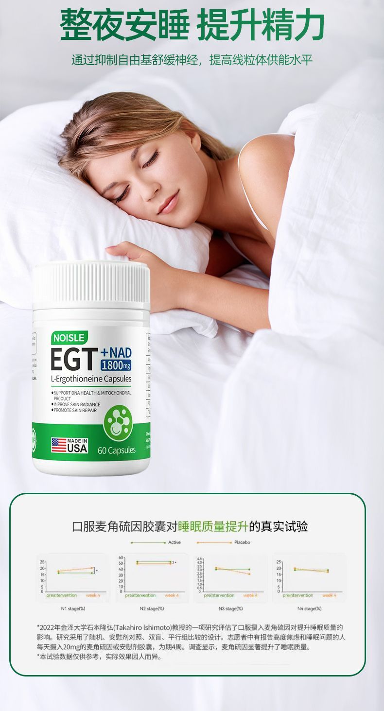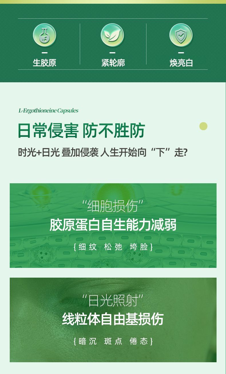 美国高端进口麦角硫因EGT+PQQ+NAD养颜胶原蛋白肽补充剂睡眠