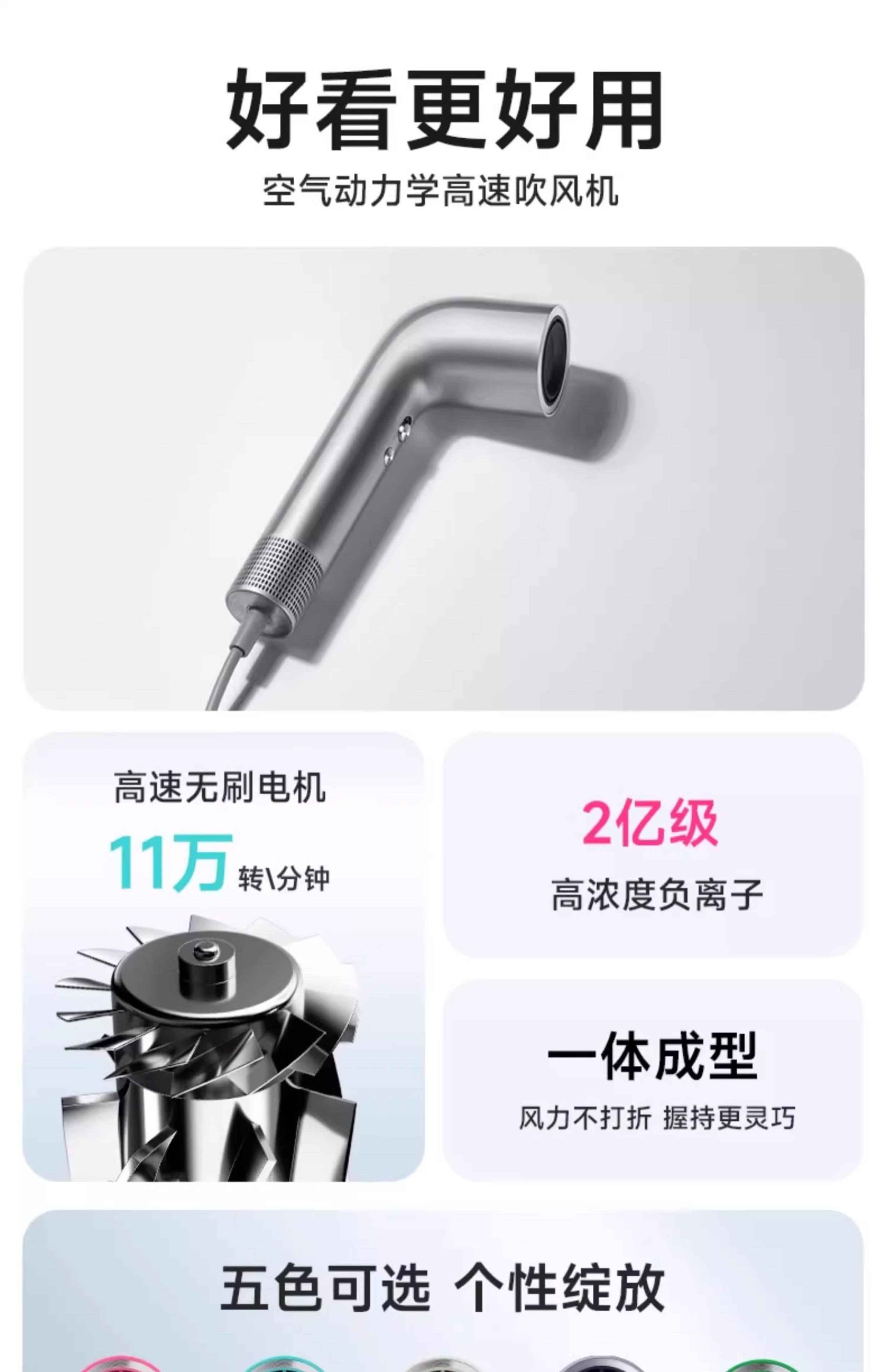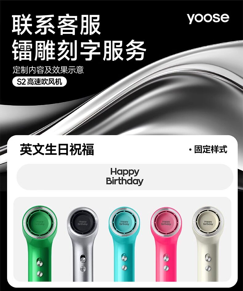 yoose有色吹风机S2高速电吹风家用护发吹风筒女友情人节生日礼物 拆封后不支持七天无理由