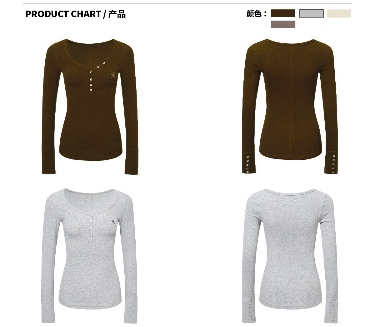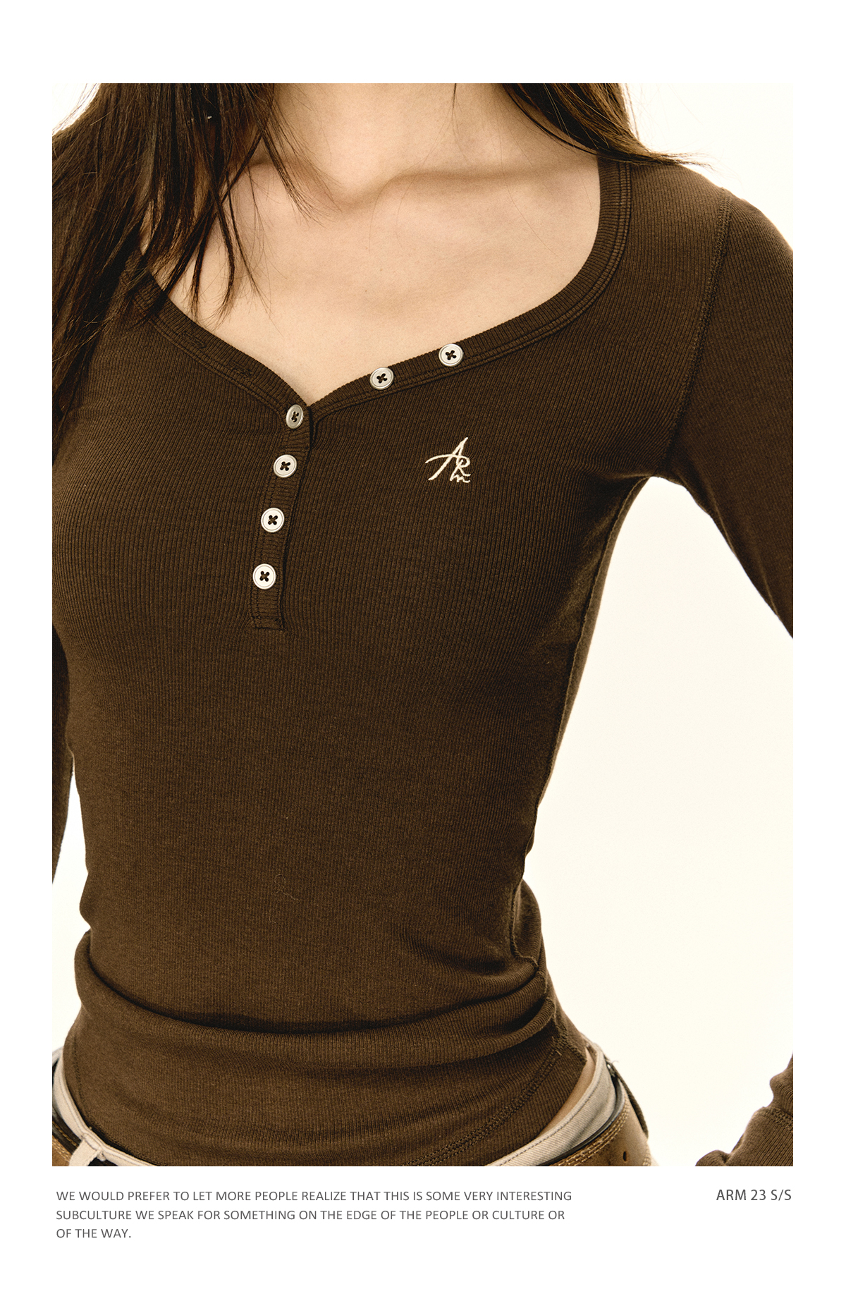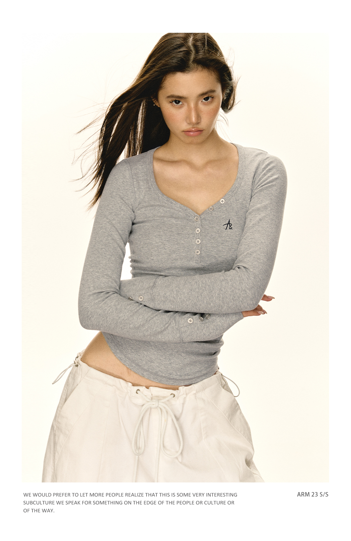 Ariseism 美式复古V领修身长袖t恤女2025秋季新款内搭上衣打底衫