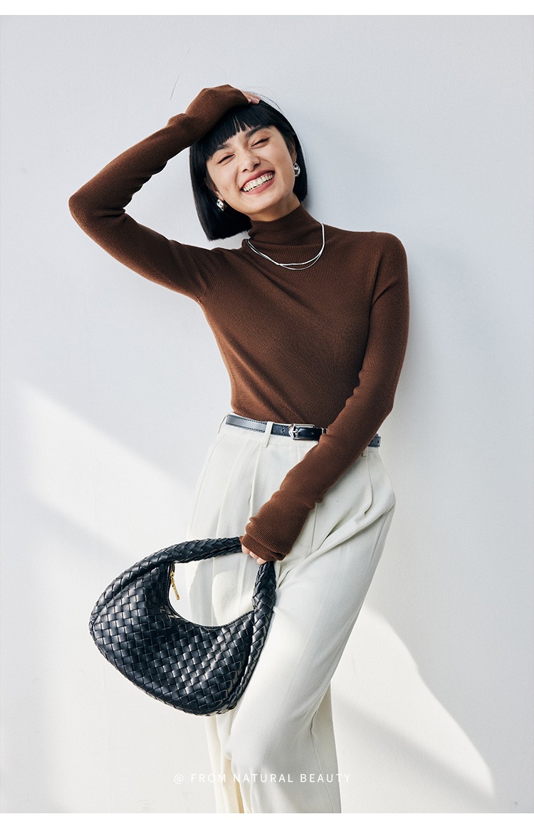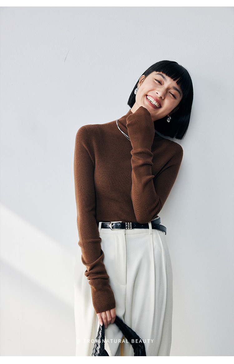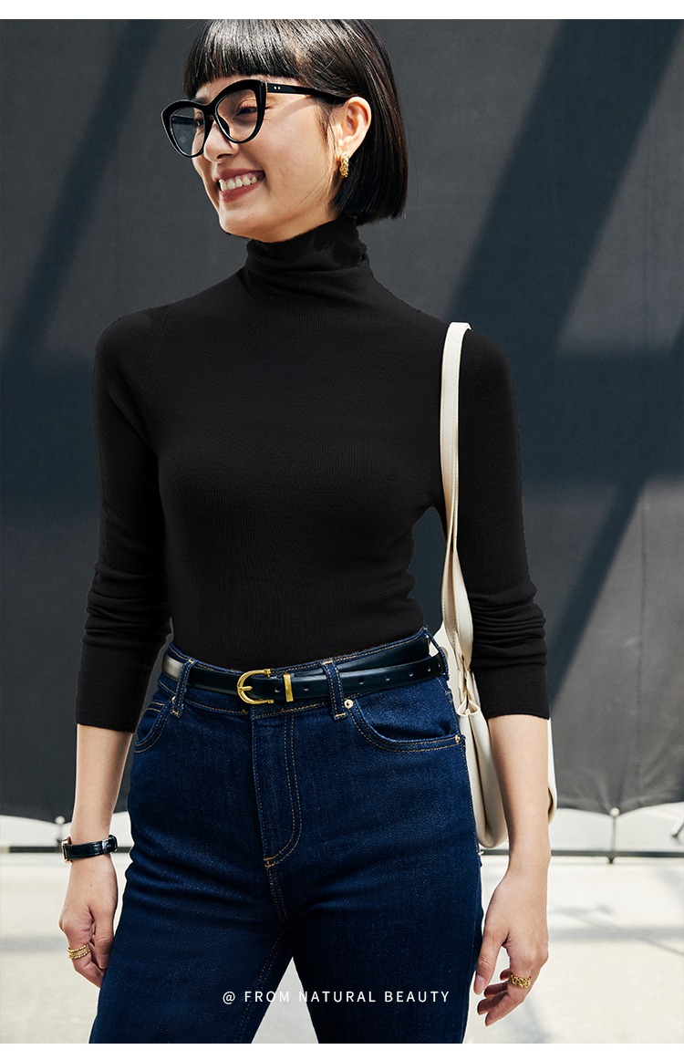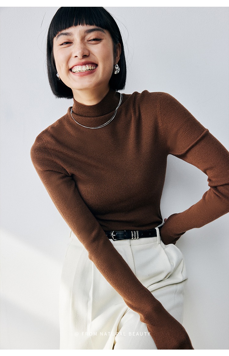 轻薄羊毛针织衫女打底衫2023秋冬新款半高领显瘦内搭针织毛衣