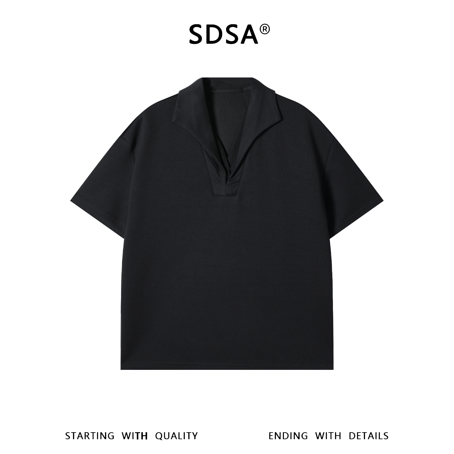 SDSA男装2026新款高贵轻奢纯色翻领短袖T恤百搭商务宽松潮流上衣