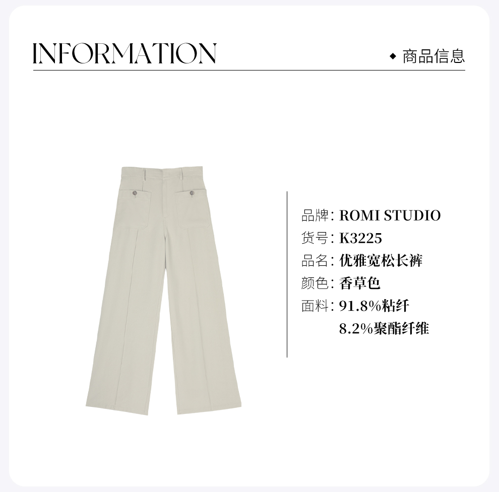 ROMI STUDIO“随性优雅”腔调穿搭 冰冰裤垂感宽松香草长裤K3225