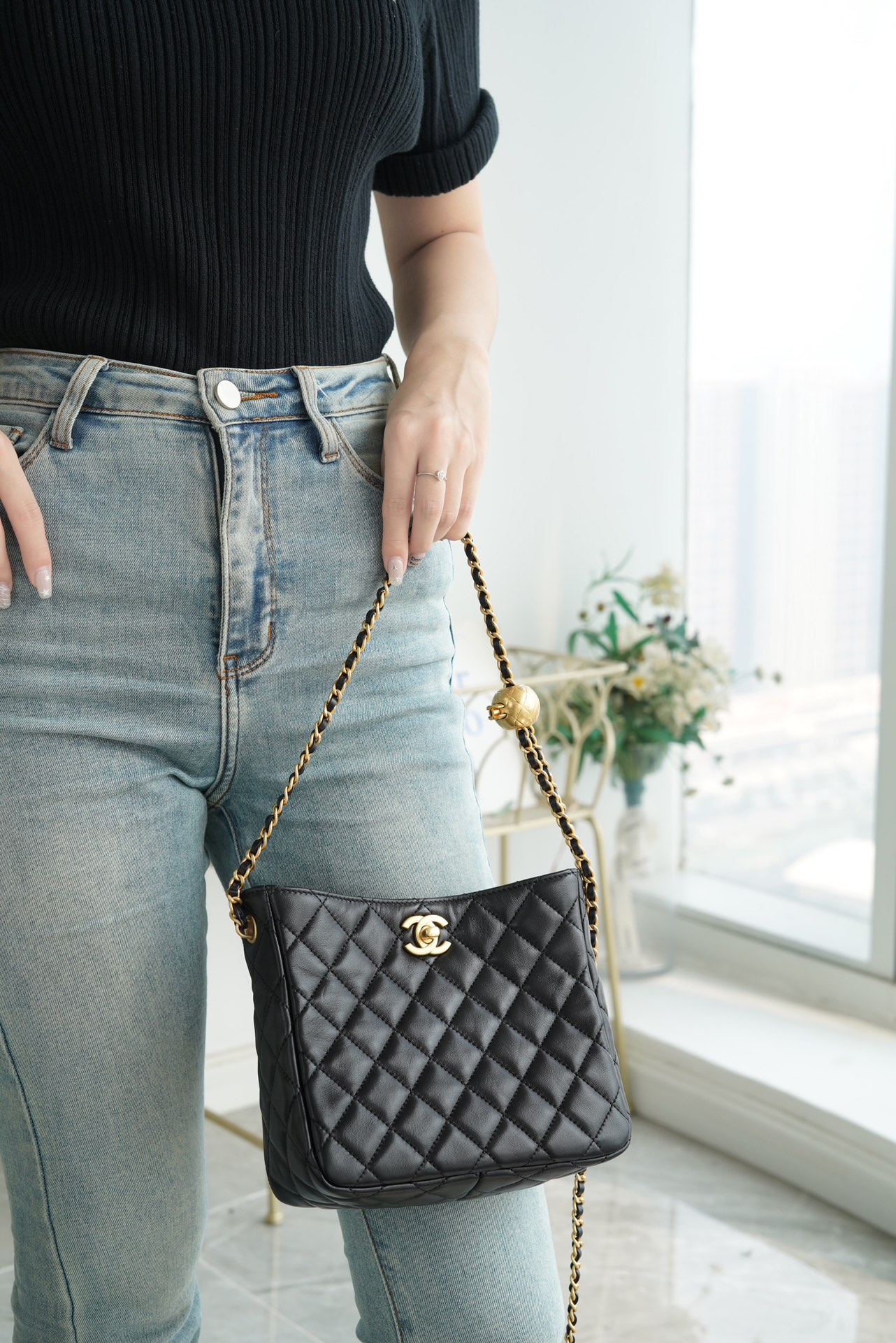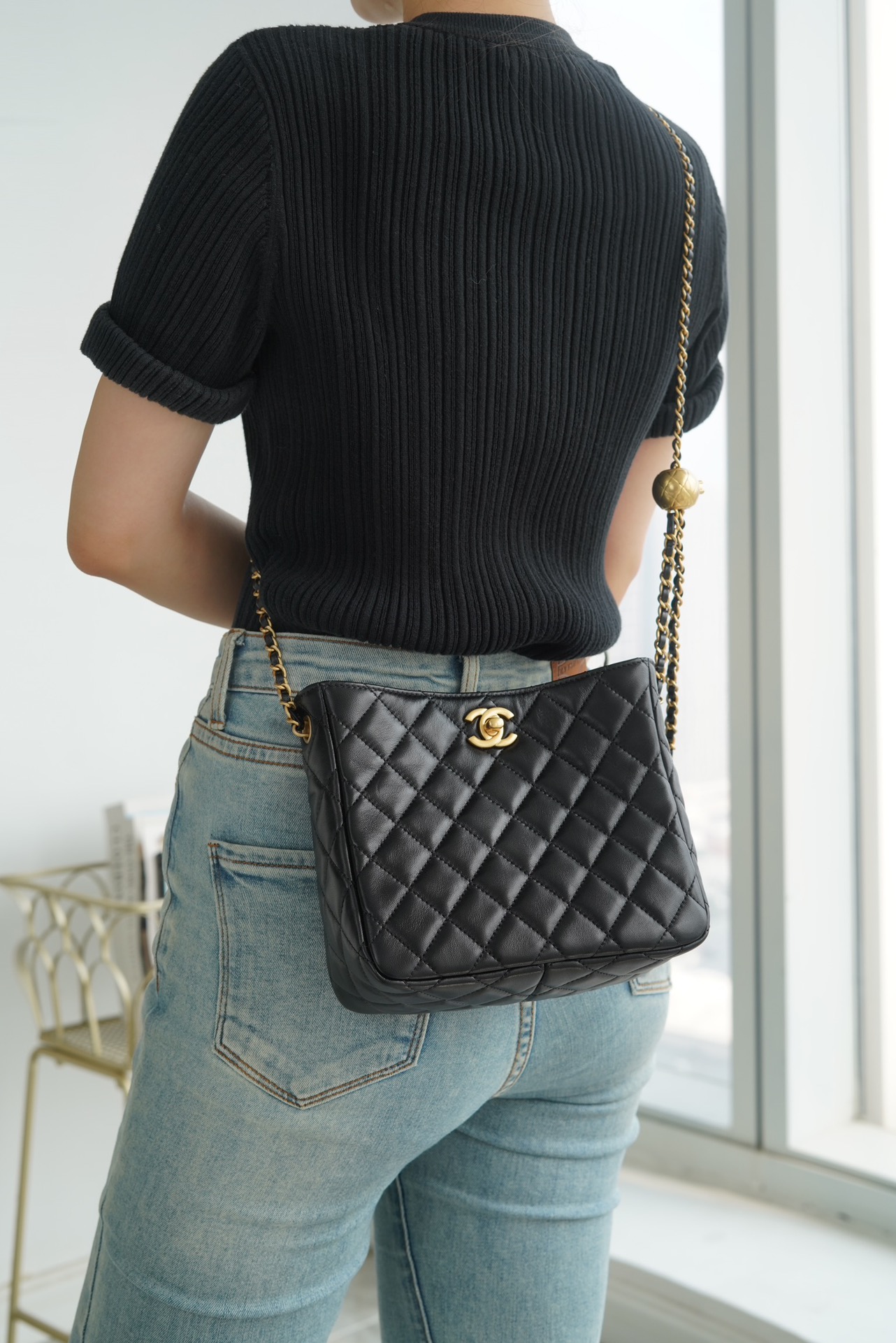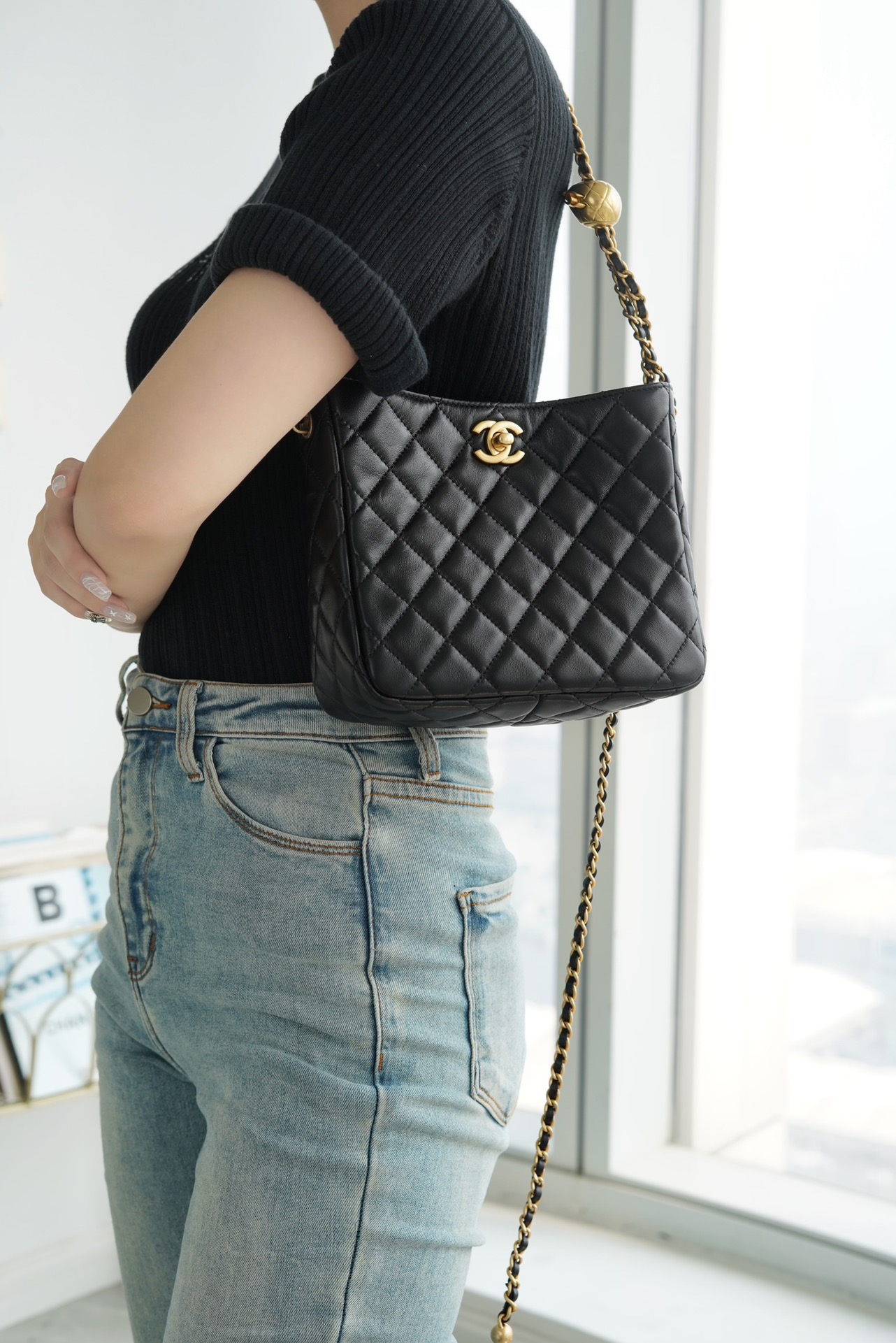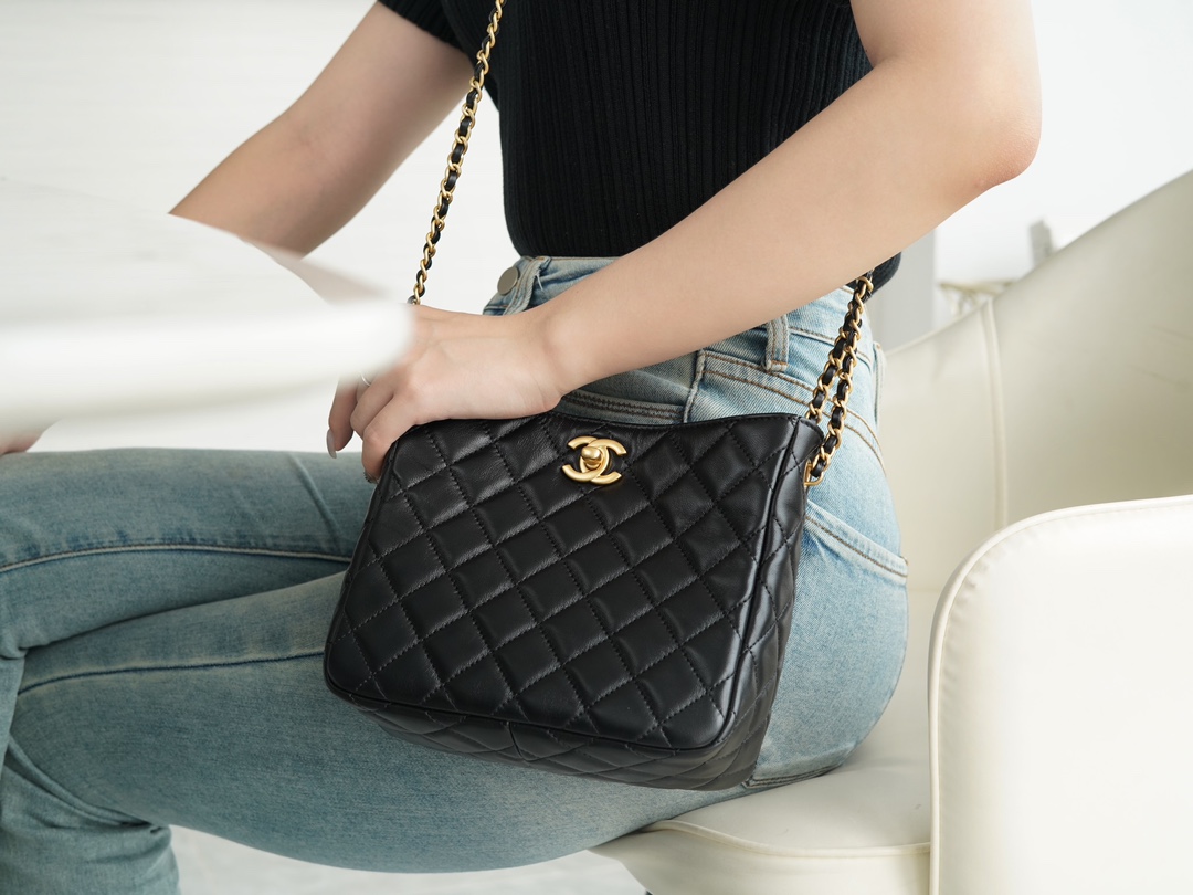 意大利???? ????原产小羊皮打造,经典菱格纹设计,皮穿金属链条??,可随意调节长度,实现单肩斜挎手提等多种背法,容量日常出行足够用?