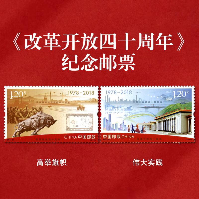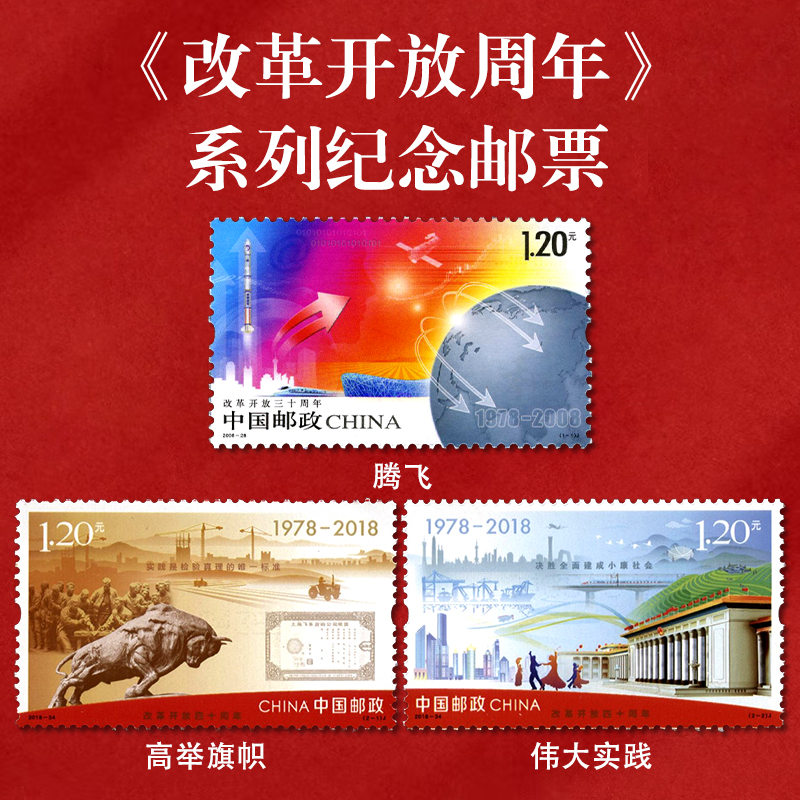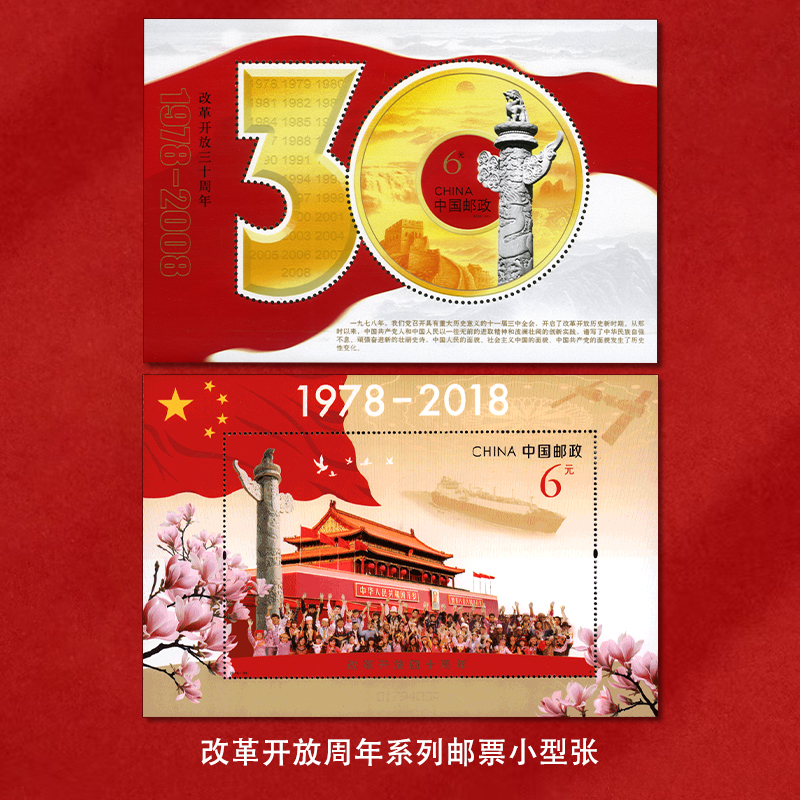 《改革开放周年》系列纪念邮票 改革开放30周年、40周年系列邮票 2018-34 2008-28