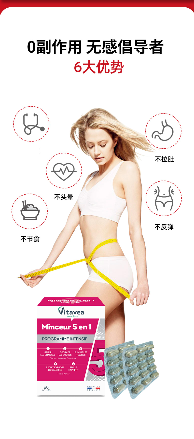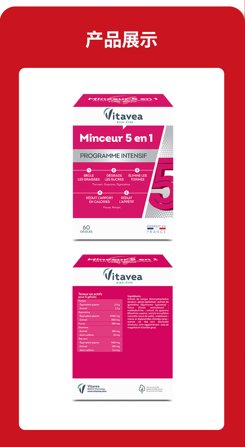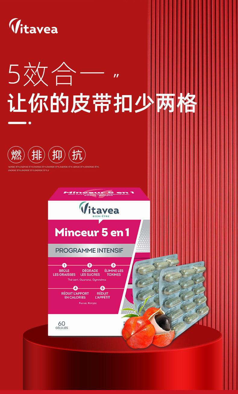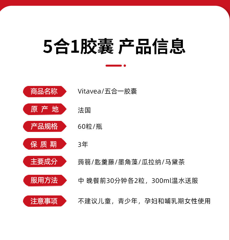 法国Vitavea五合一胶囊女神体控糖分解热量抗抑制饱腹感瓜拉纳