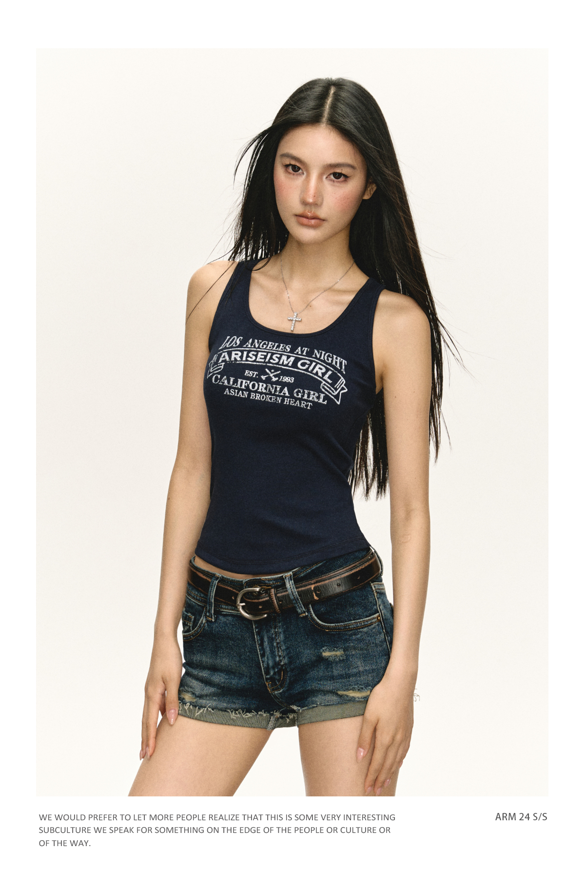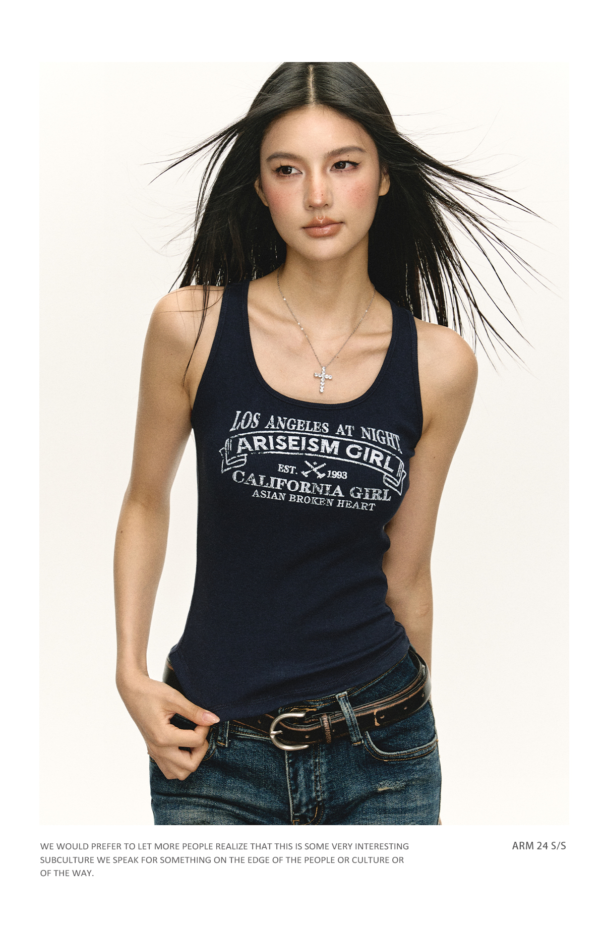 Ariseism 美式复古印花工字吊带背心女2025夏季新款辣妹修身上衣