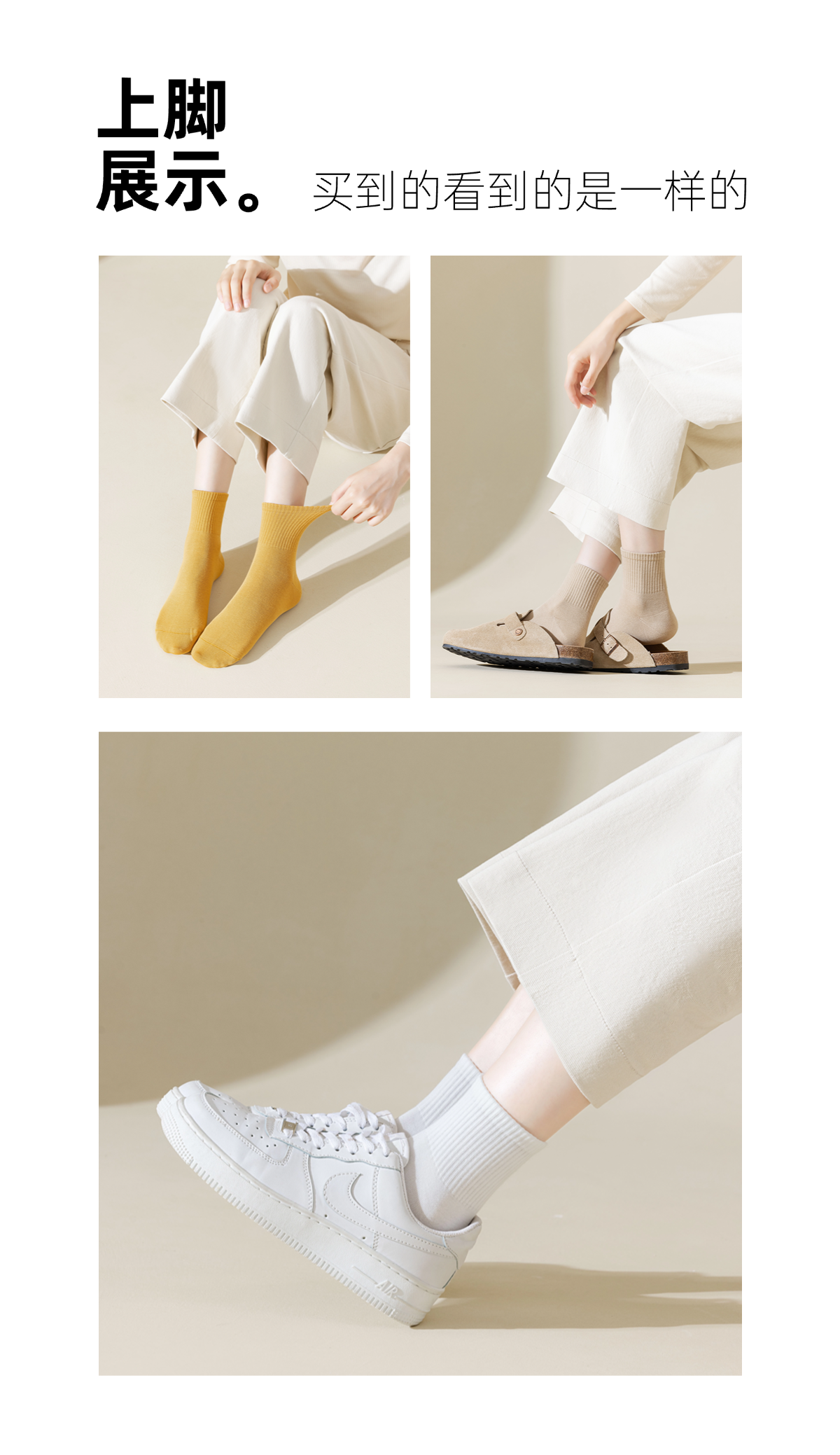 【售后标准】:袜尖尖所有款袜子支持免费试穿1双,不满意剩余未穿退回可退全款,质量问题免费退换货(物流费由我们承担),非质量问题支持30天无理由退换货(物流费由客户承担)