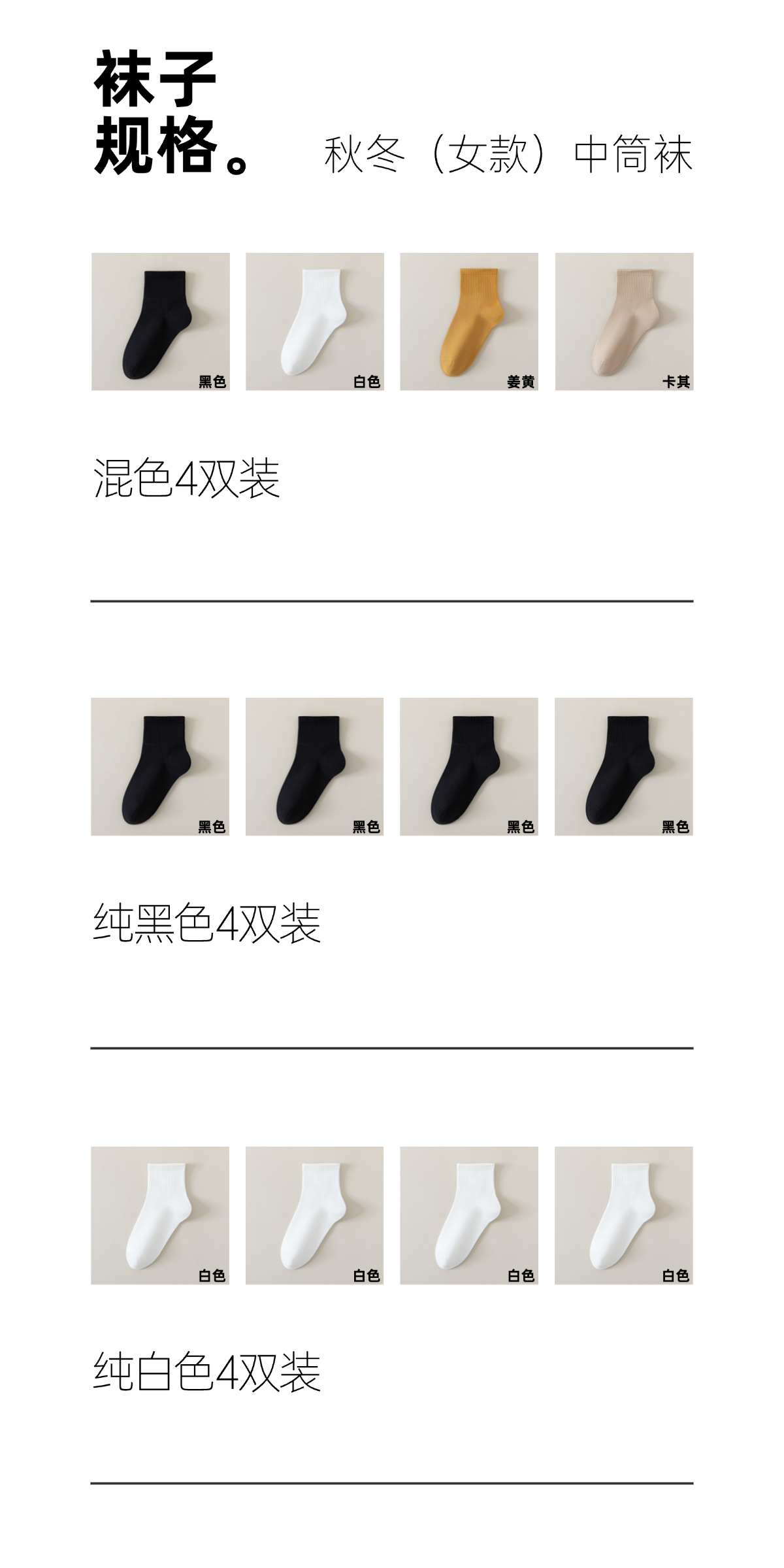 袜尖尖长绒棉系列国标A类秋冬款女士中筒袜4双装 商品图7