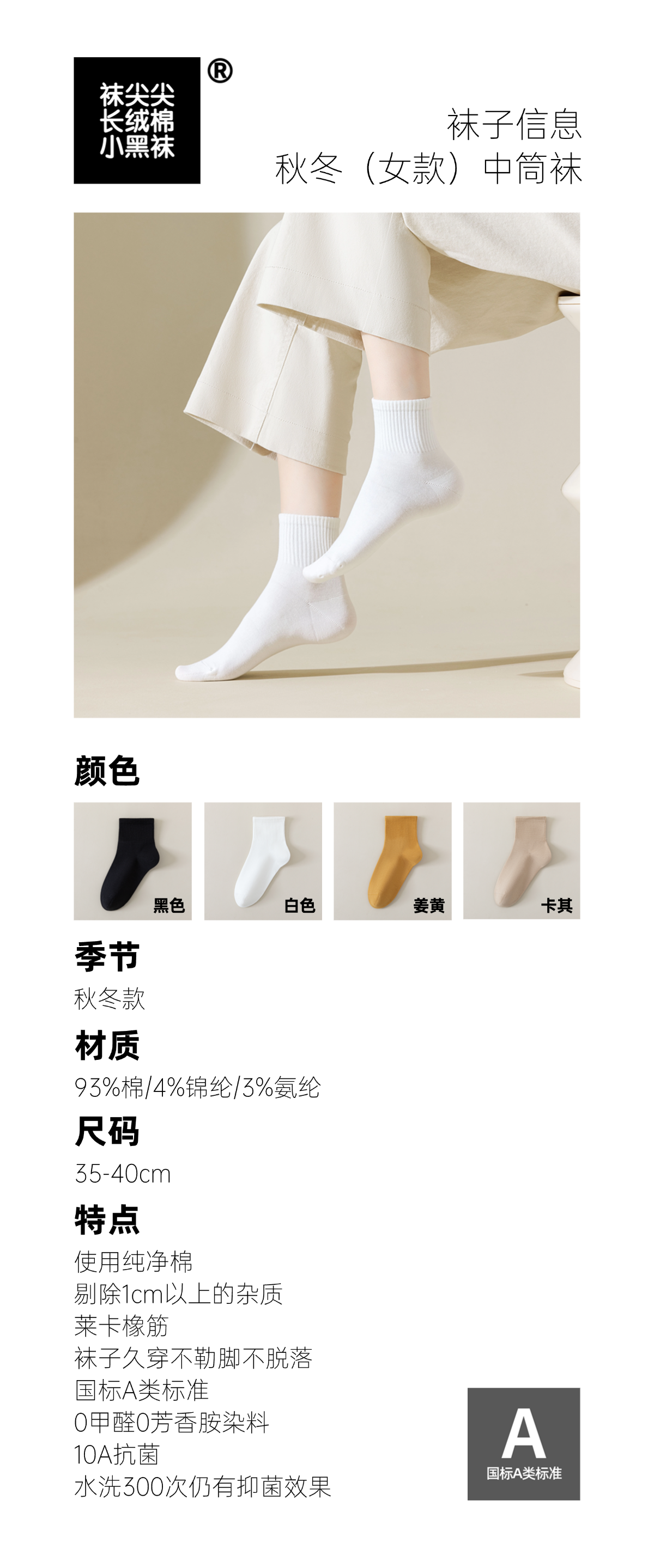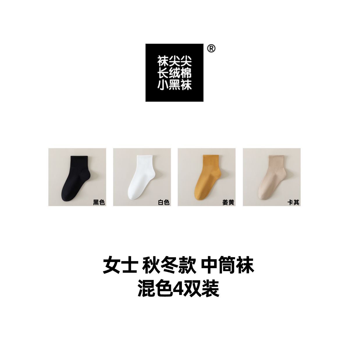 袜尖尖长绒棉系列国标A类秋冬款女士中筒袜4双装