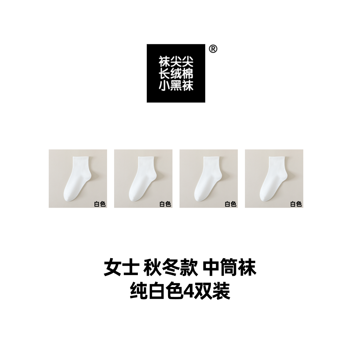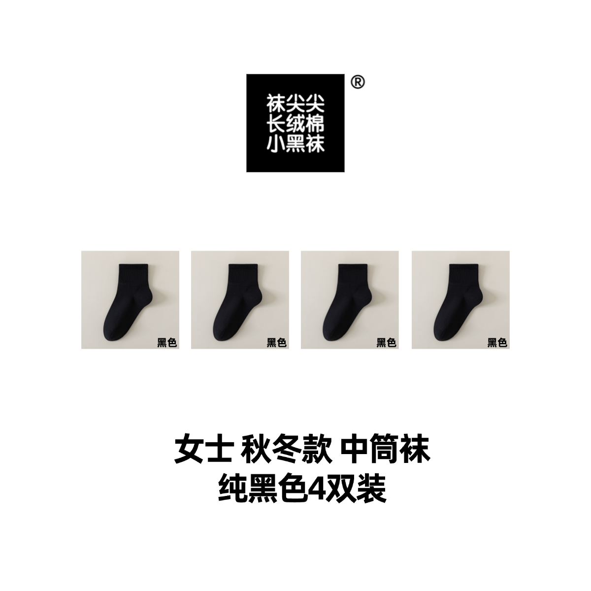 袜尖尖长绒棉系列国标A类秋冬款女士中筒袜4双装 商品图0