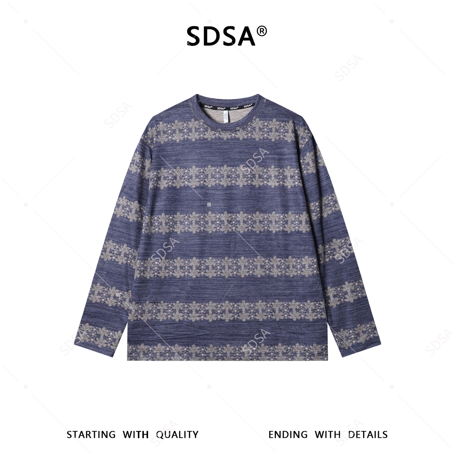 26T96SDSA男装2026新款复古提花条纹T恤雪花提花宽松长袖打底衫