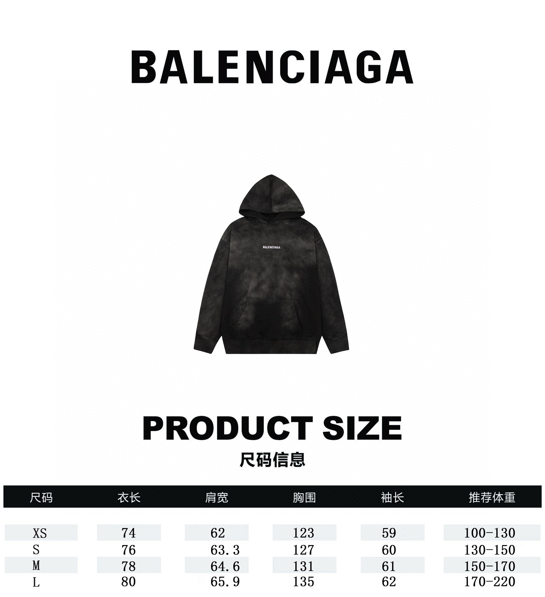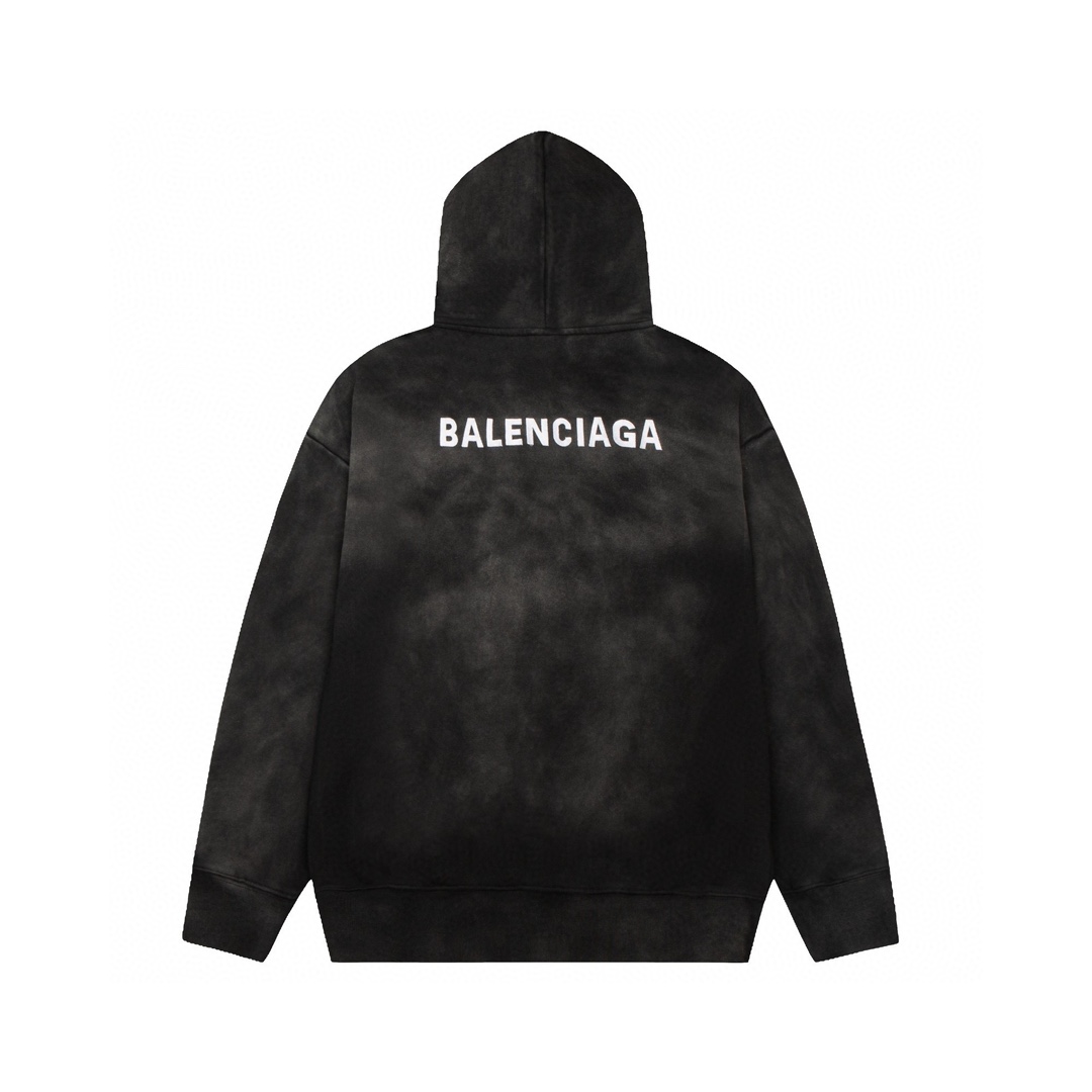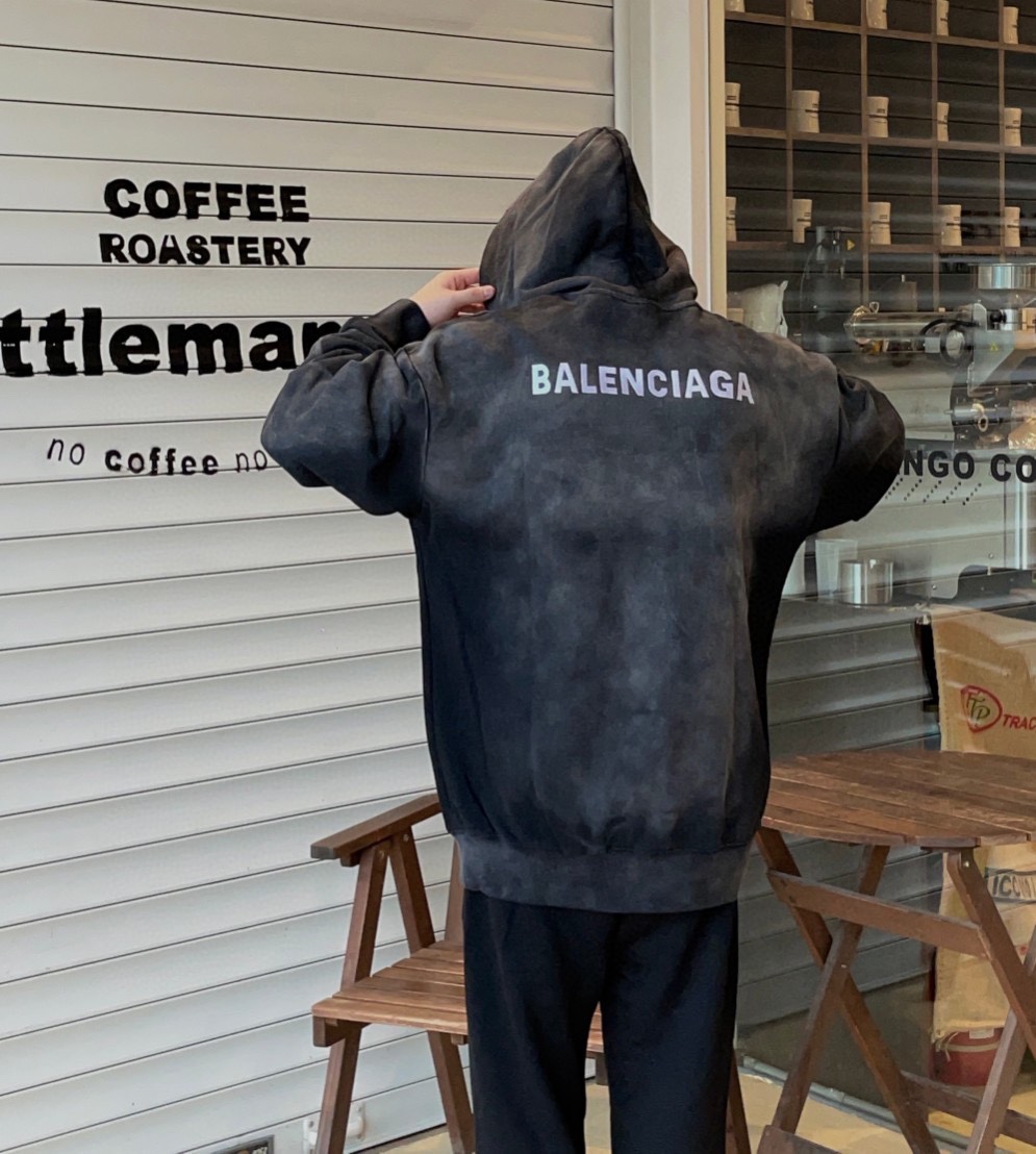 高品质 BAL 巴黎世* 前后logo刺绣渐变做旧连帽卫衣