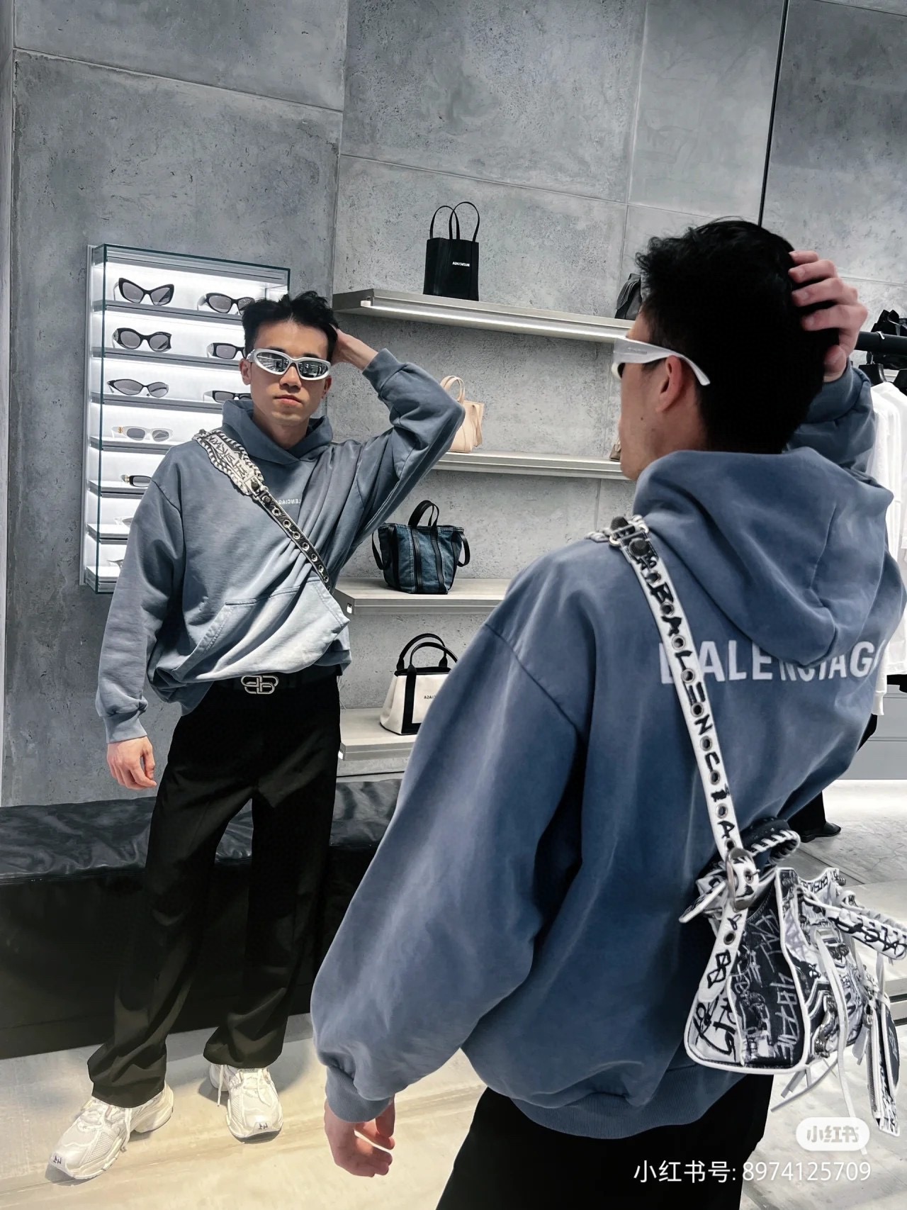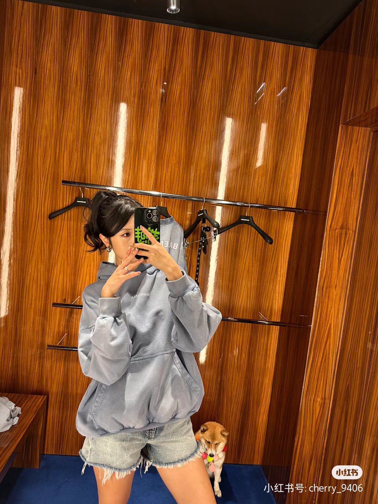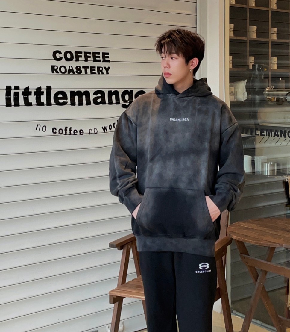 高品质 BAL 巴黎世* 前后logo刺绣渐变做旧连帽卫衣