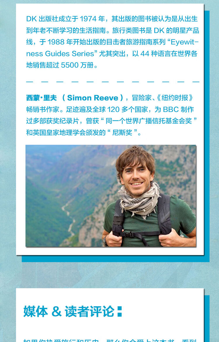 DK出版社成立于1974年,其愿景就是创作既有视觉冲击力又包含丰富信息的图书,DK出版的图书被认为是从出生到年老不断学习的生活指南。旅行类图书是DK的明星产品线,于1988年开始出版的目击者旅游指南系列“Eyewitness Guides Series”尤其突出,以44种语言在世界各地销售超过5500万册。