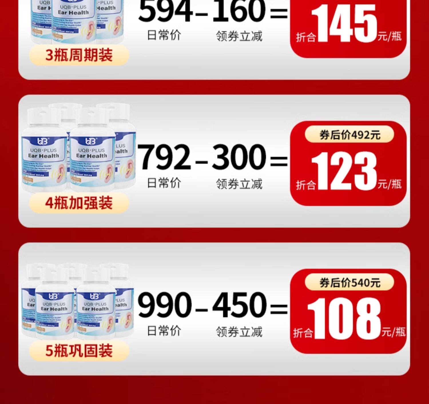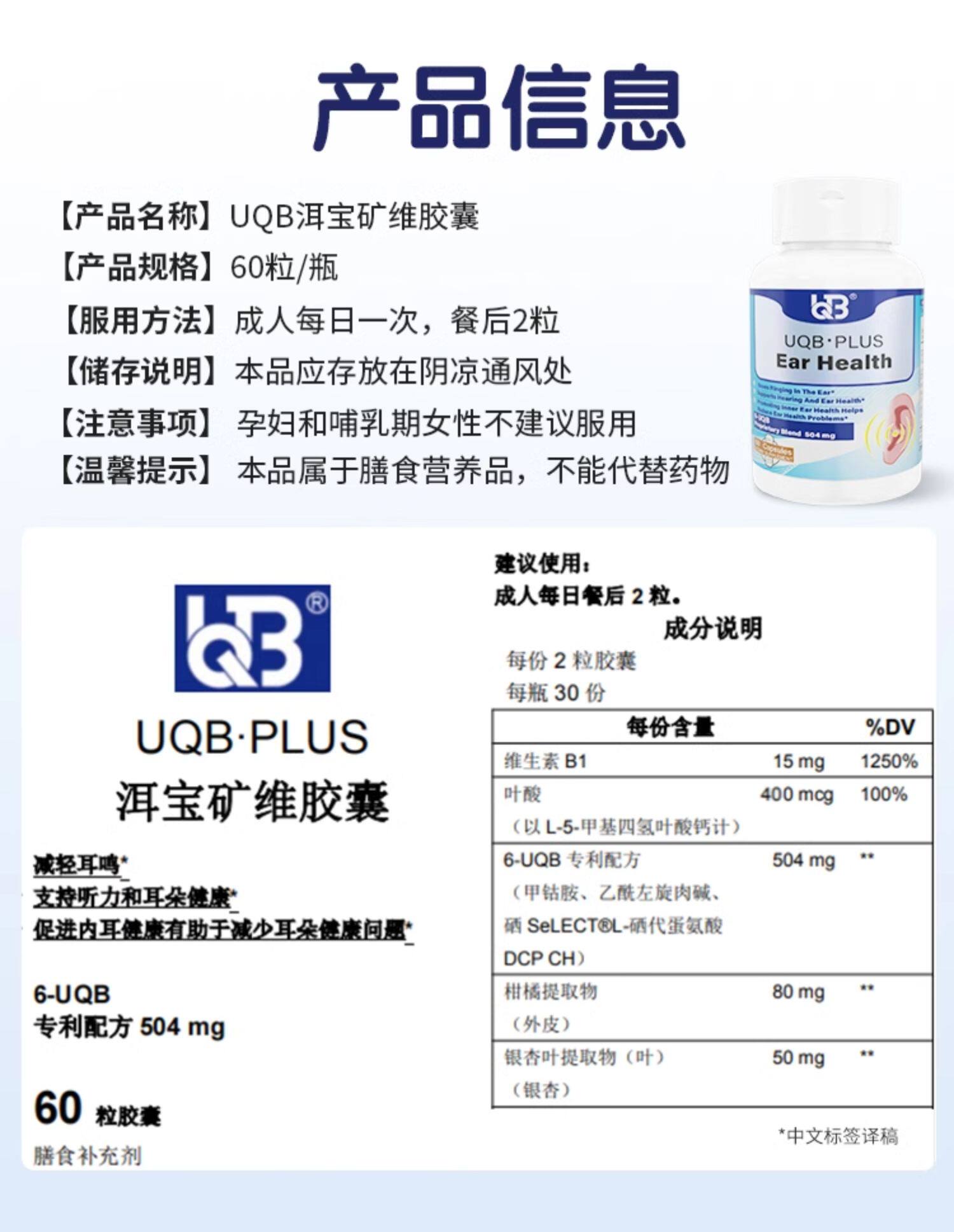 UQB美国原装进口洱宝矿维胶囊神经性耳鸣嗡嗡响改善耳健康耳背