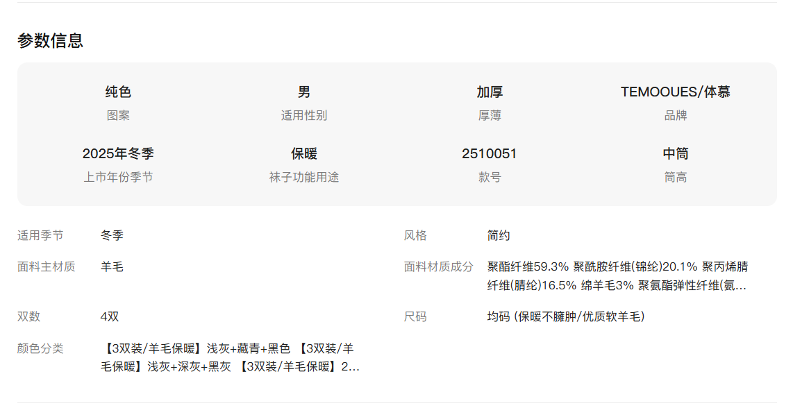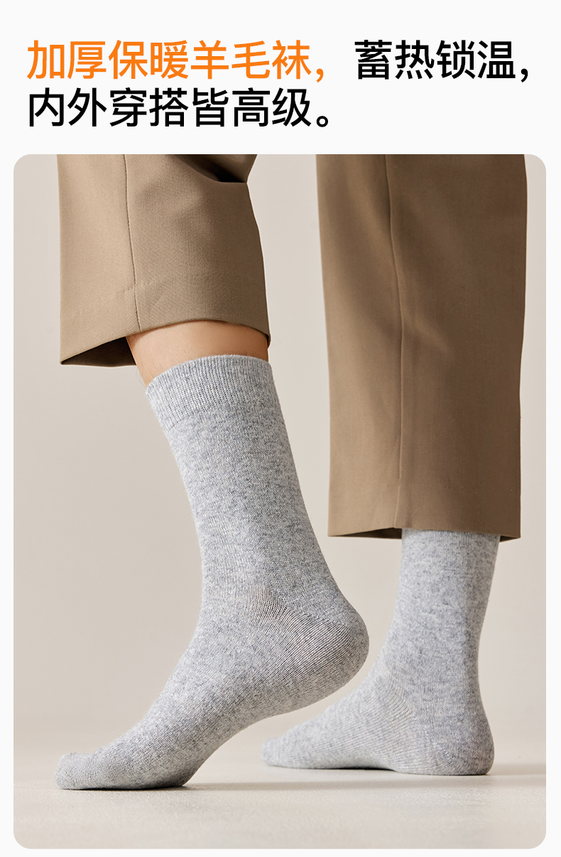 原价33.9元 限时折扣价21.9元 【体慕袜子】羊毛袜子男款秋冬保暖中筒袜抑菌防臭吸汗发热袜子男士加厚长袜