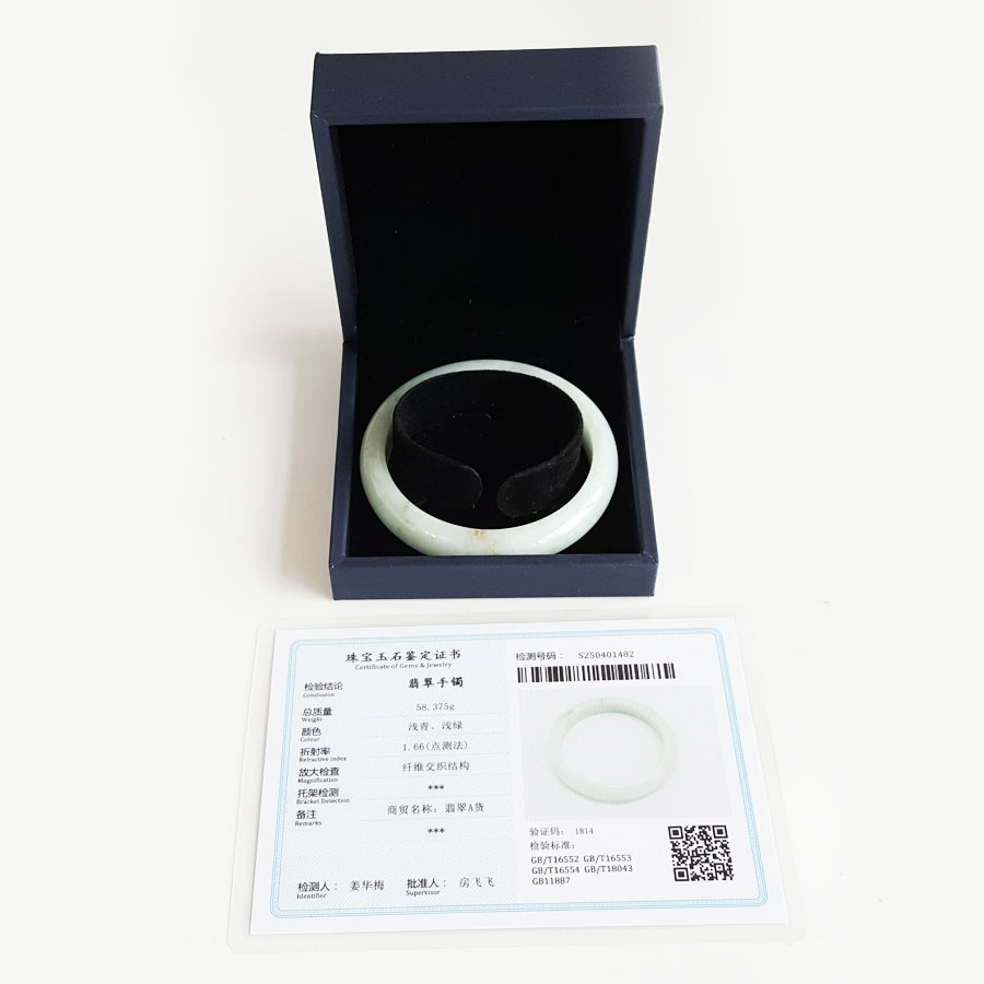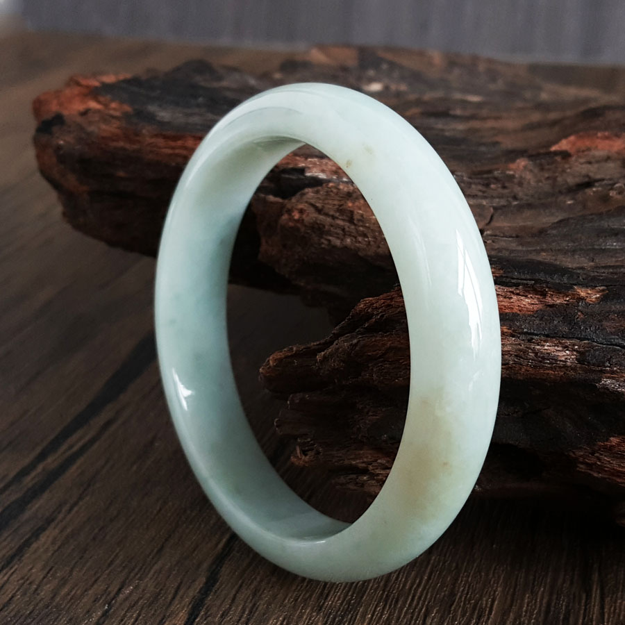 名称 | 天然正桩细腻无纹裂糯种60号飘黄翡翠手镯 |