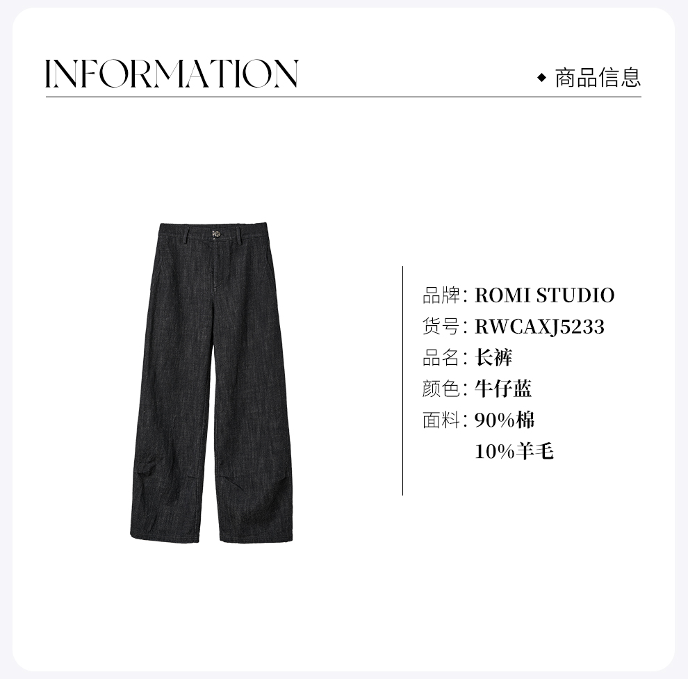 ROMI STUDIO“美式复古”羊毛棉混纺柔软小褶点缀弯刀裤 RWCAXJ5233