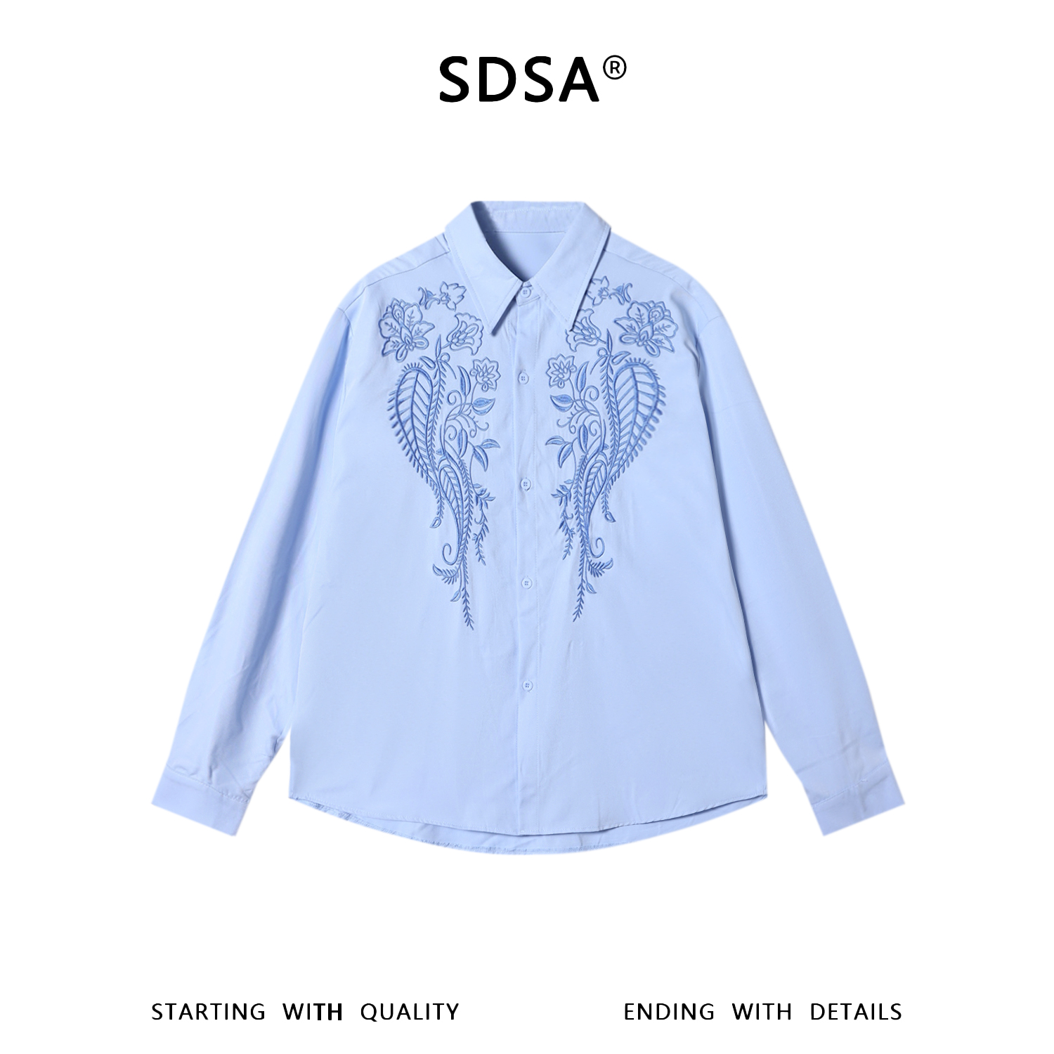 SDSA男装2026新款高贵轻奢简约时尚纯色刺绣放哪里长袖衬衫百搭