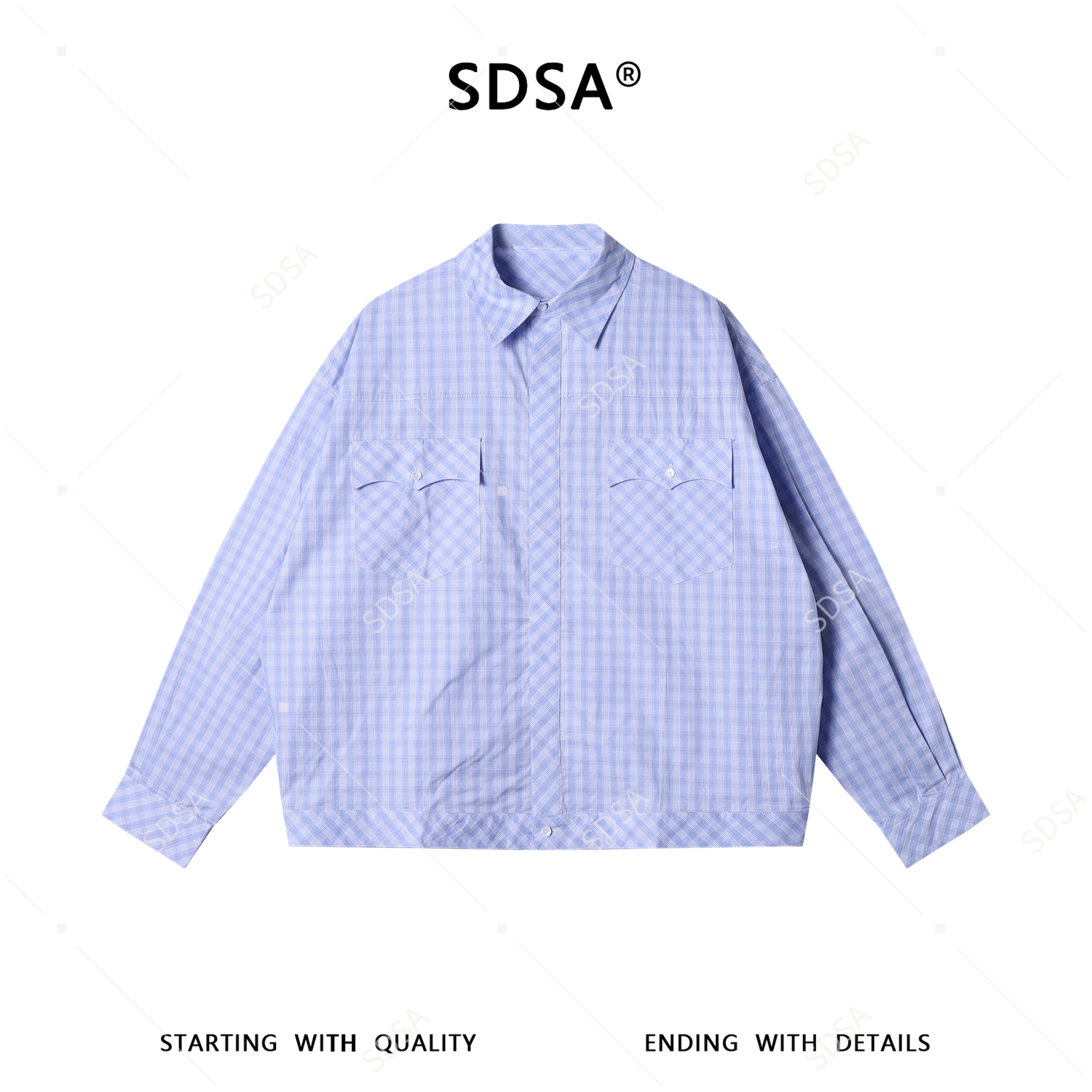 SDSA男装2026新款高贵轻奢时尚简约撞色格子长袖衬衫百搭宽松衬衣
