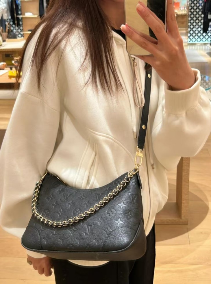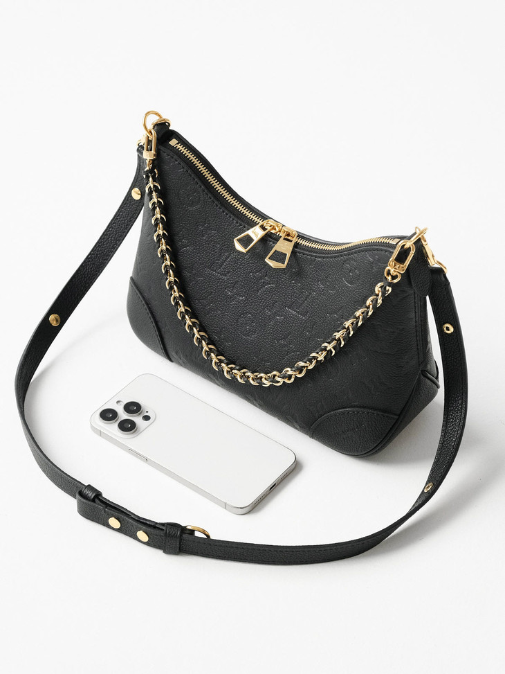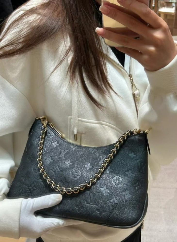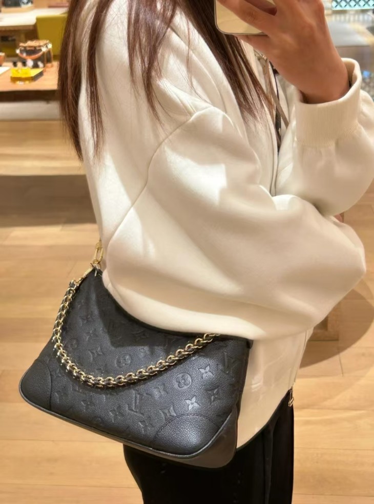 LV牛角包,一直是它家的爆款,Boulogne 小号手袋以Monogram Empreinte皮革焕新经典型,为编织链条融入耀目金属件,同时不失原版帆布设计的功量。内贴袋可收纳智能手机,多种背携方式随心切换。