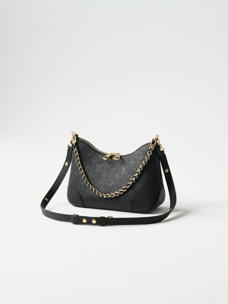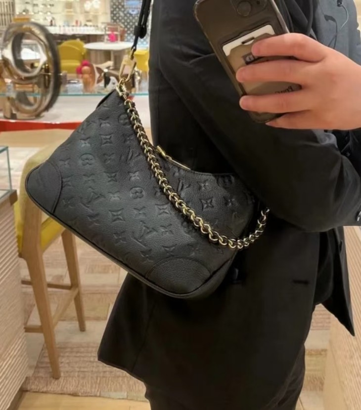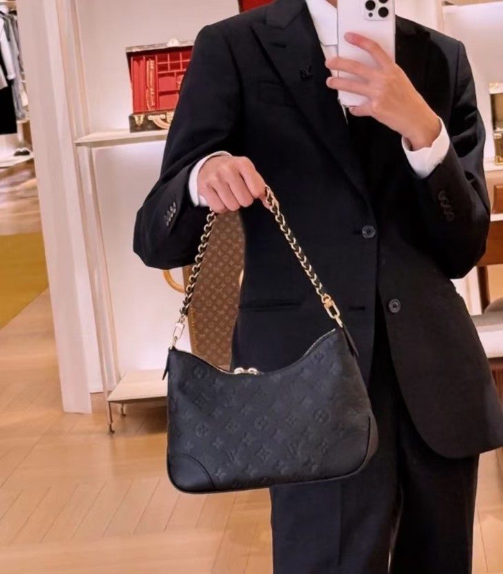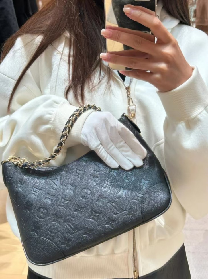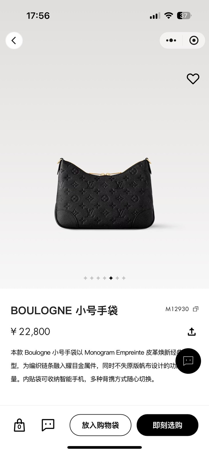 LV牛角包,一直是它家的爆款,Boulogne 小号手袋以Monogram Empreinte皮革焕新经典型,为编织链条融入耀目金属件,同时不失原版帆布设计的功量。内贴袋可收纳智能手机,多种背携方式随心切换。
