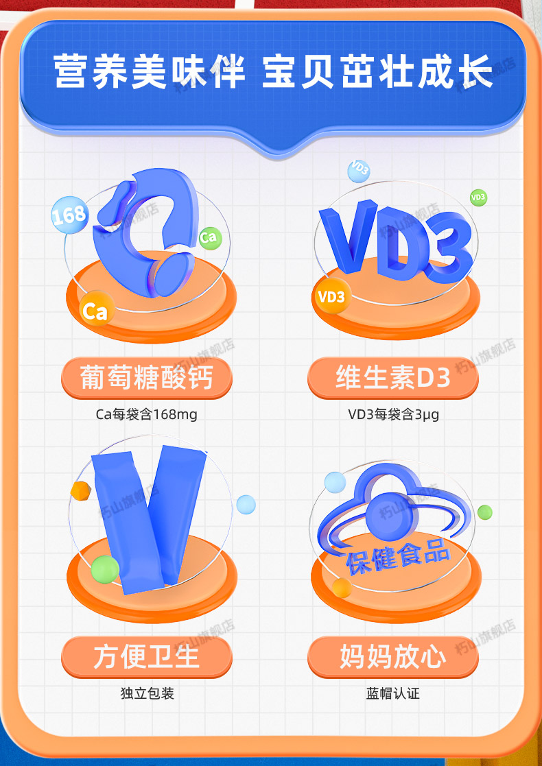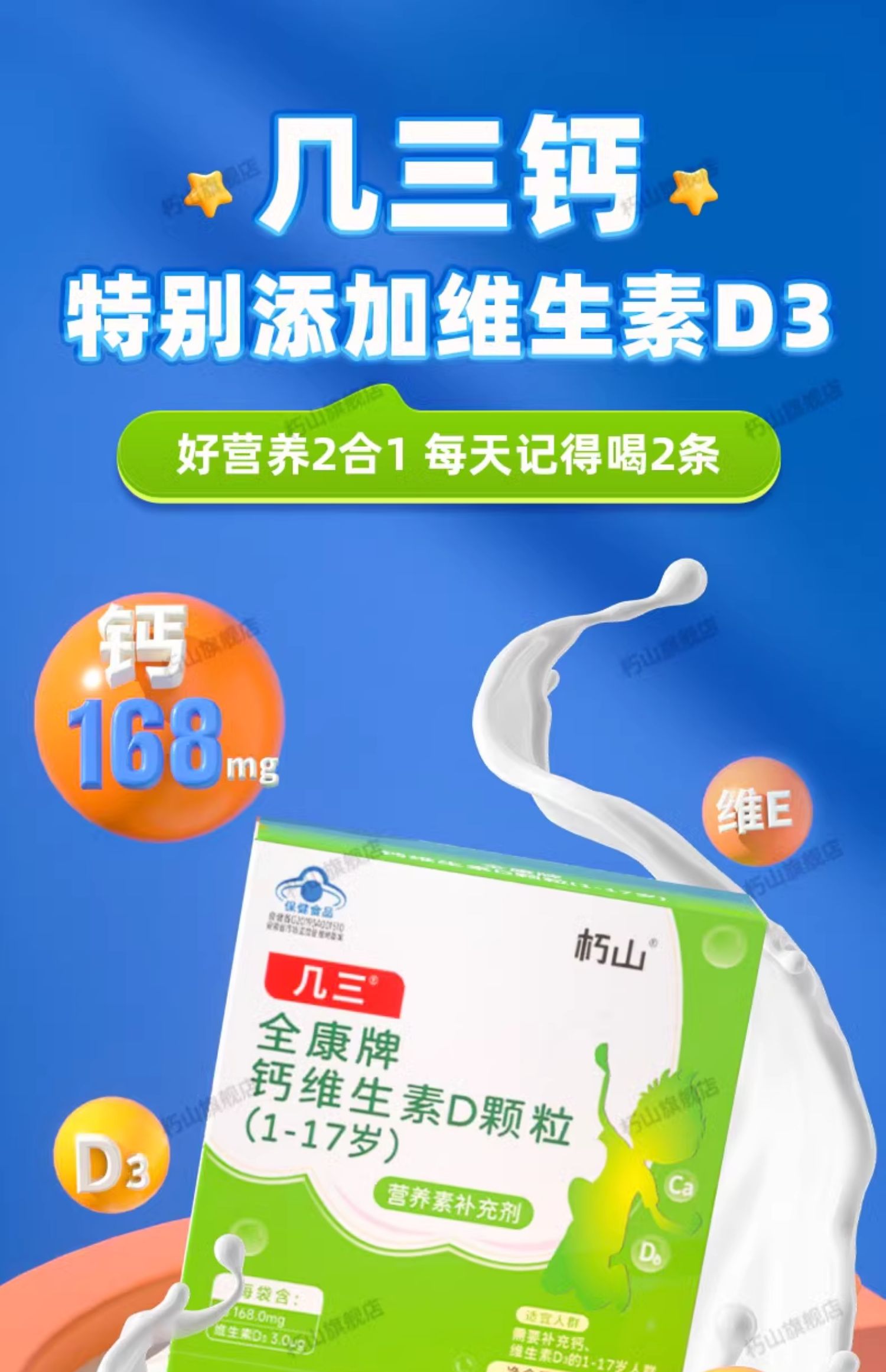 几三 儿童补钙维生素D颗粒 骨质朽山几三钙 贝盖云 官方正品朽山