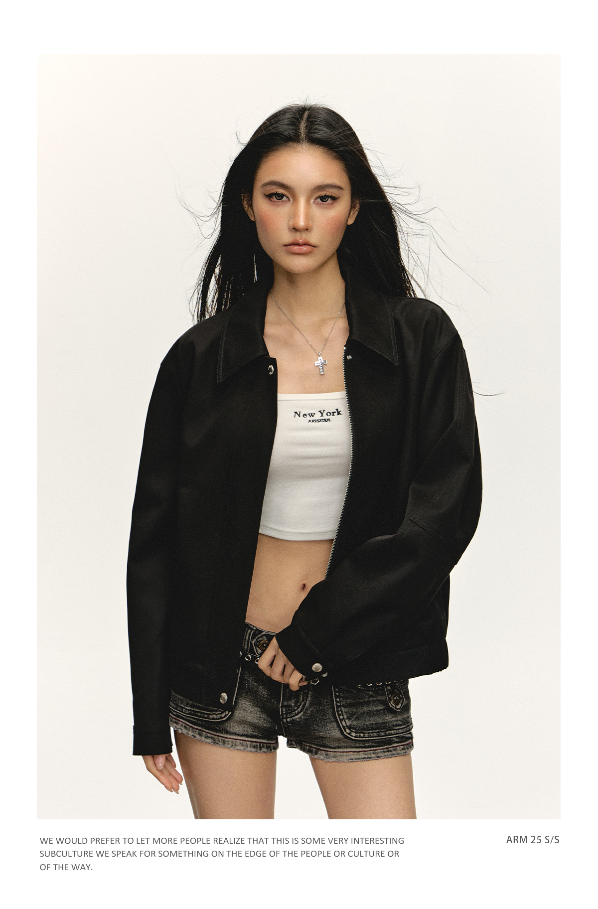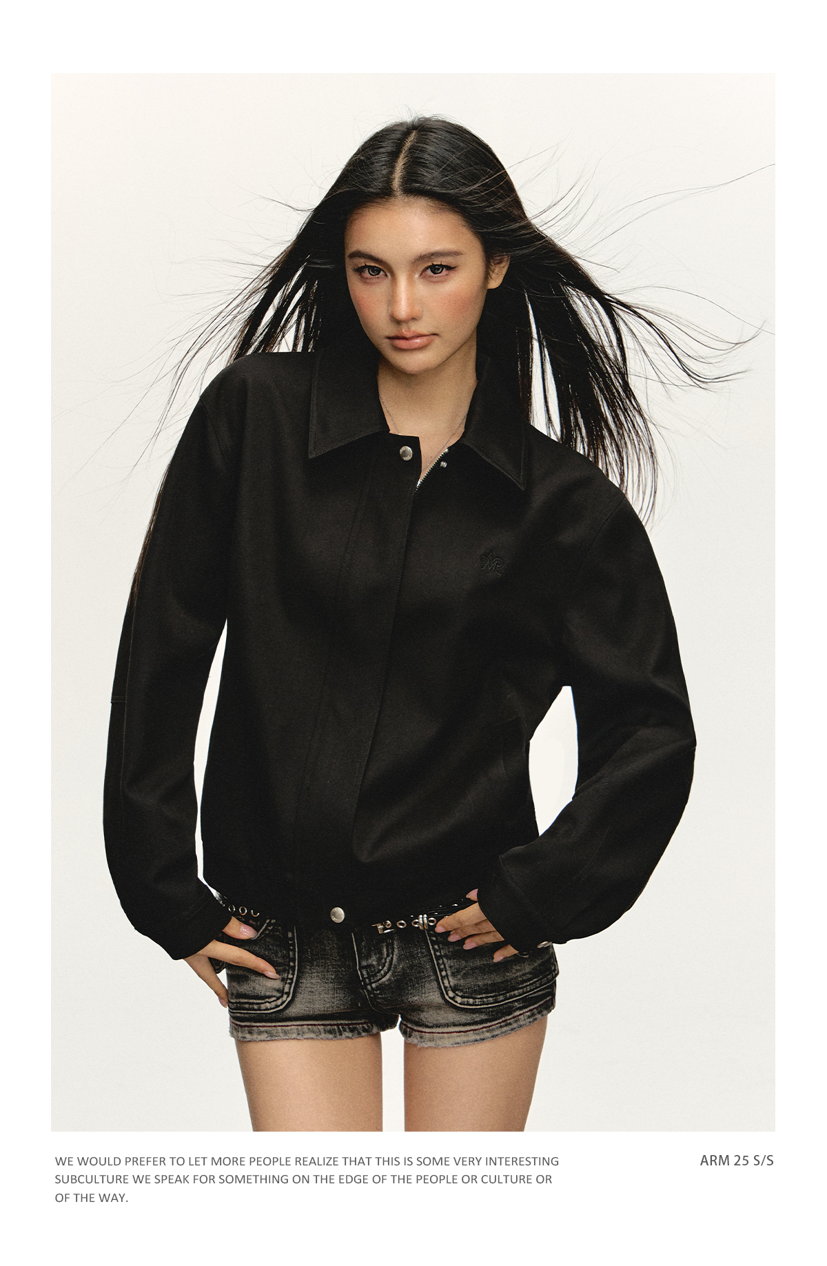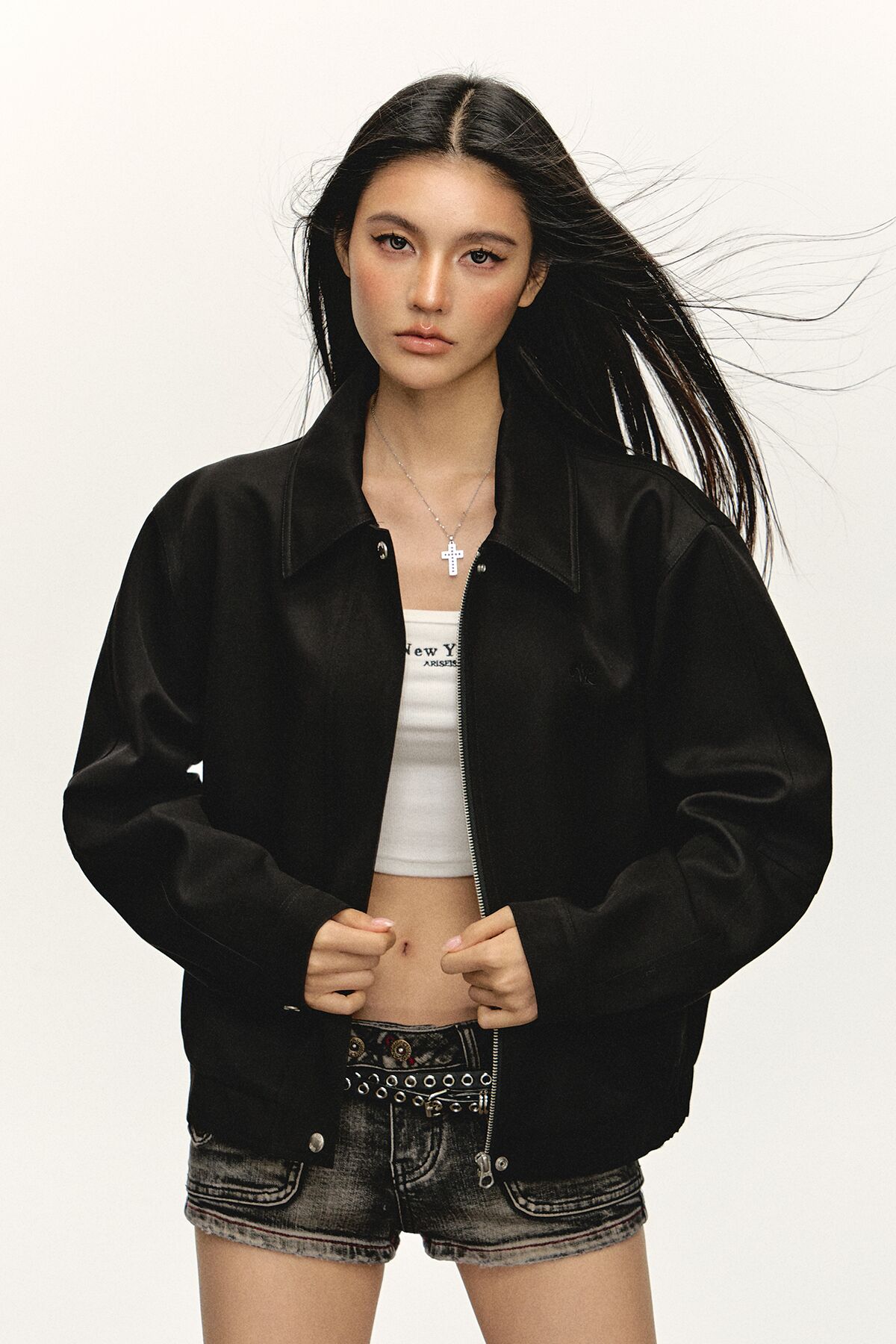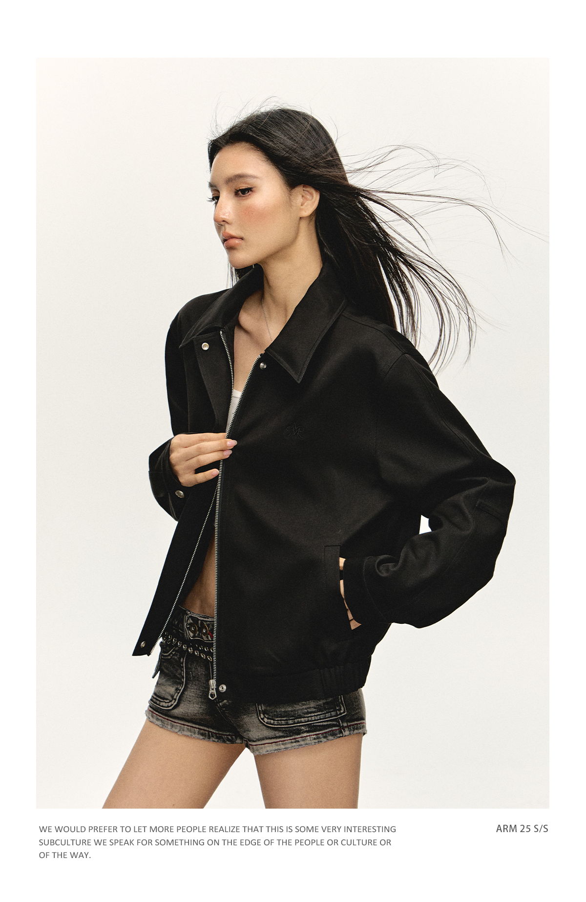 Ariseism 美式复古黑色宽松夹克外套女秋季新款上衣