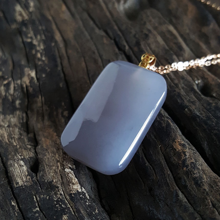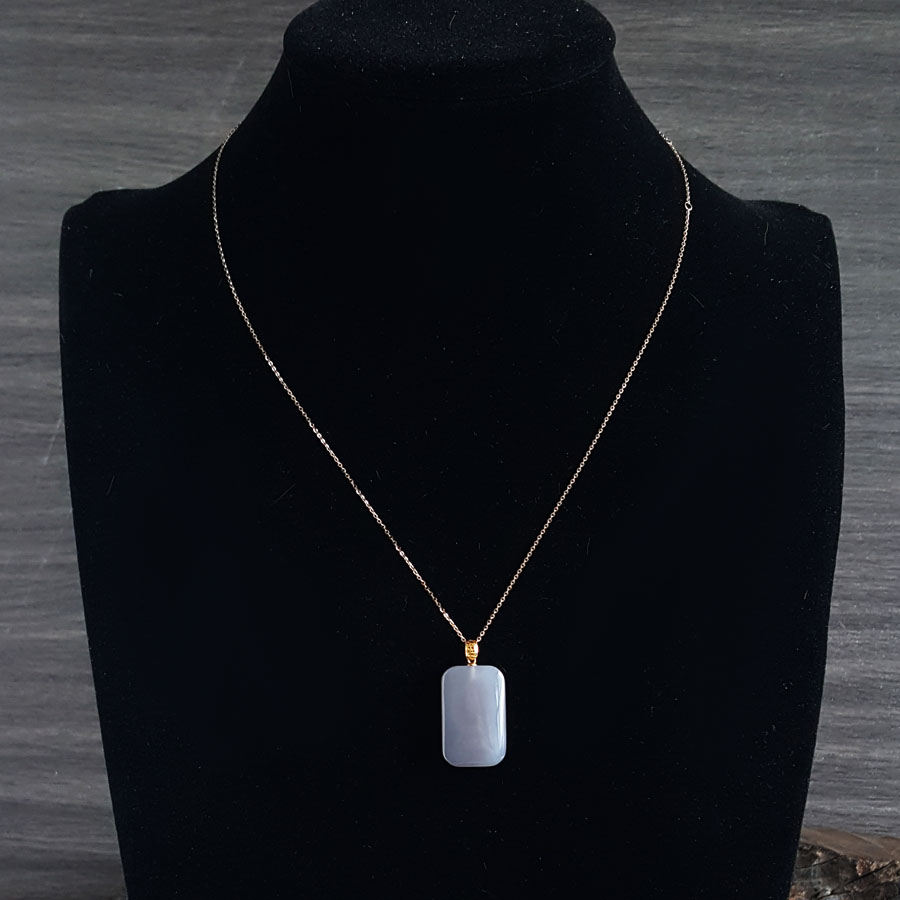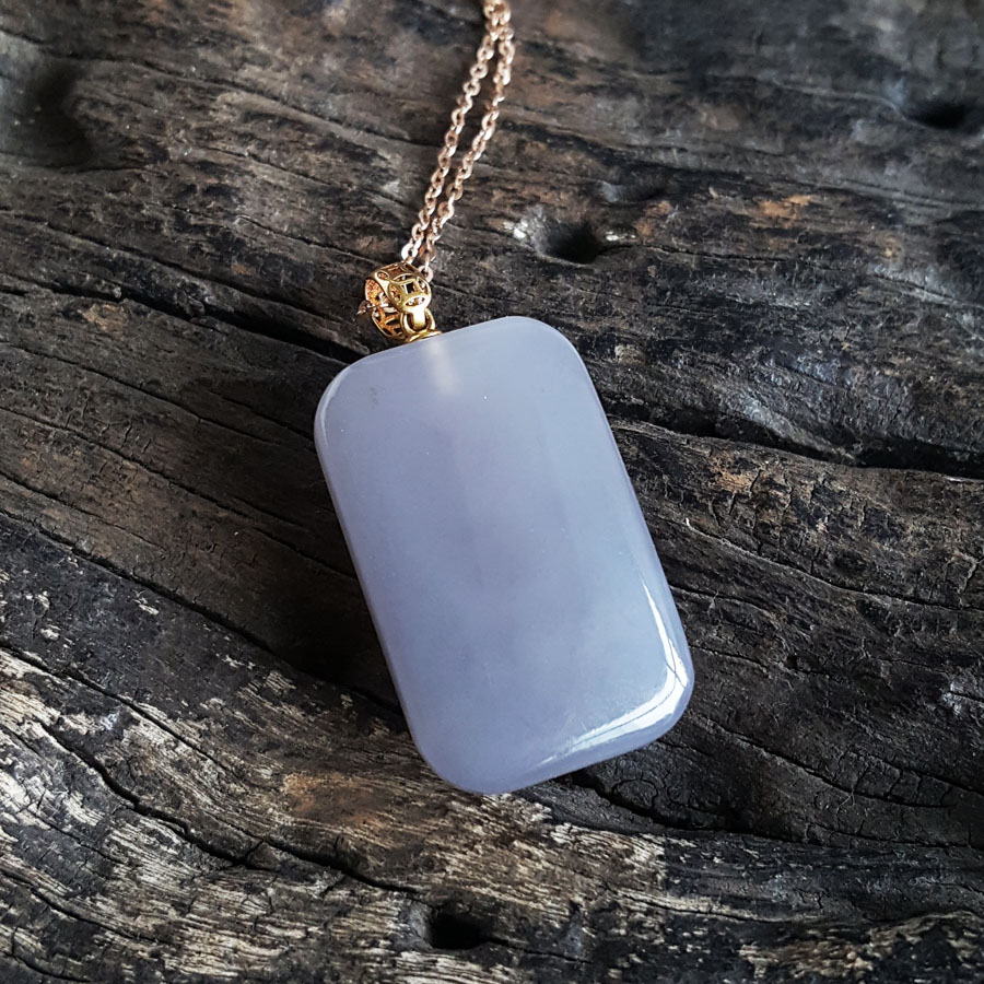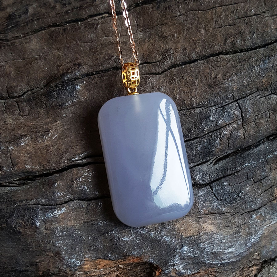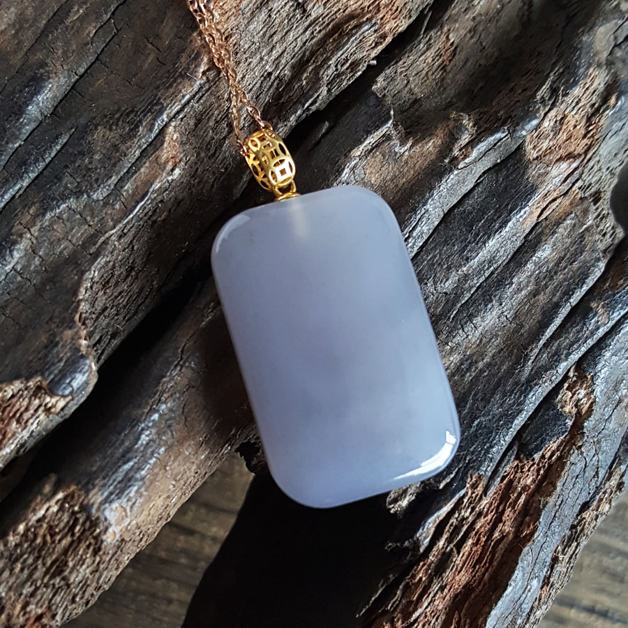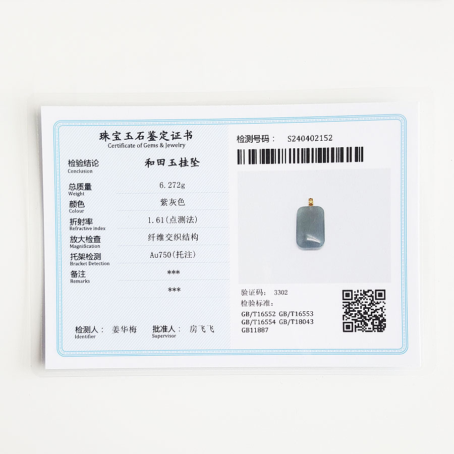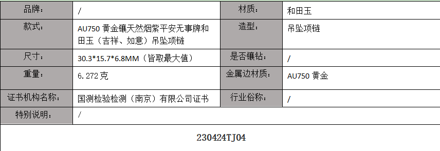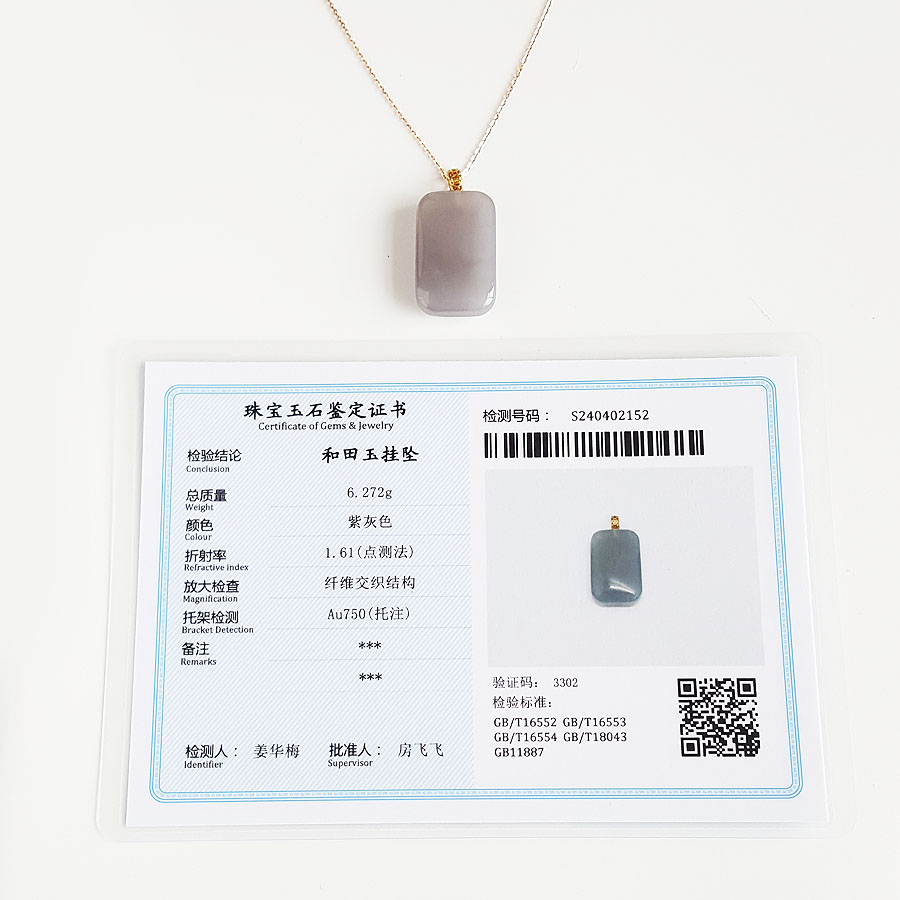 【天然正品】AU750黄金镶天然烟紫平安无事牌和田玉(吉祥、如意)吊坠项链230424TJ04