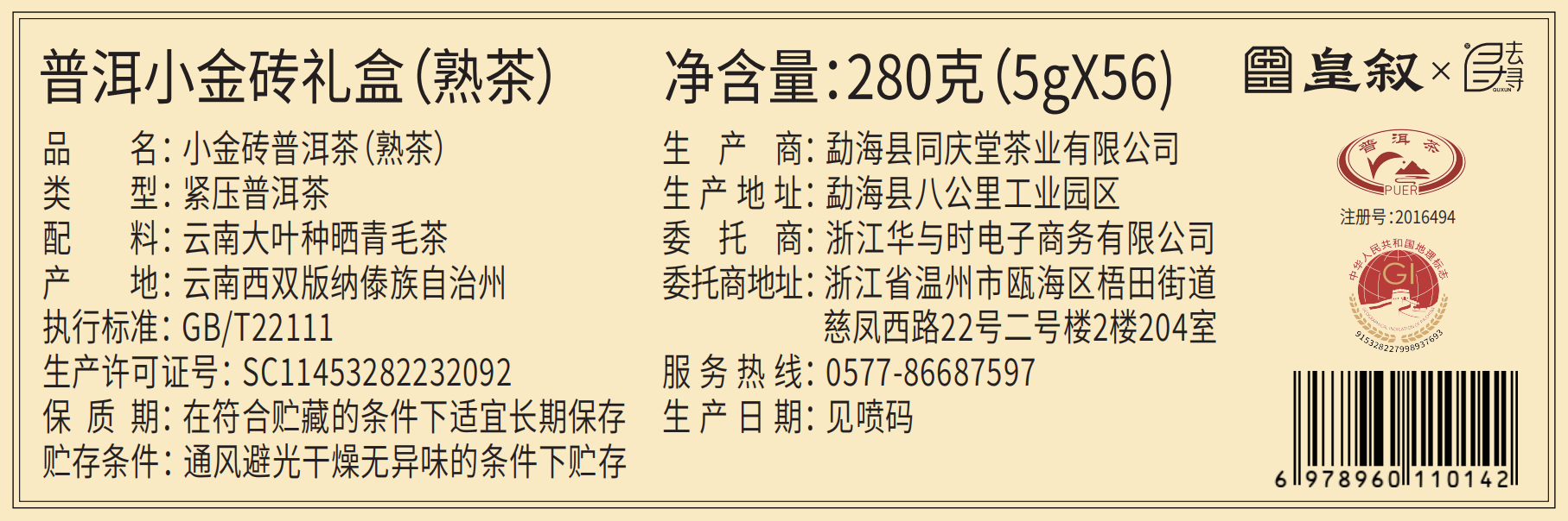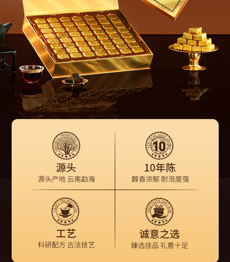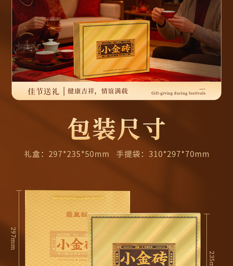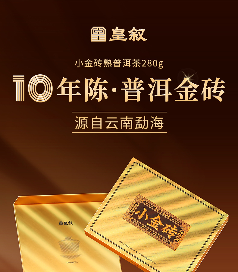 【普洱小金砖礼盒】皇叙普洱熟茶黑茶云南普洱茶280g10年陈普洱小金砖送领导送长辈送朋友自己喝