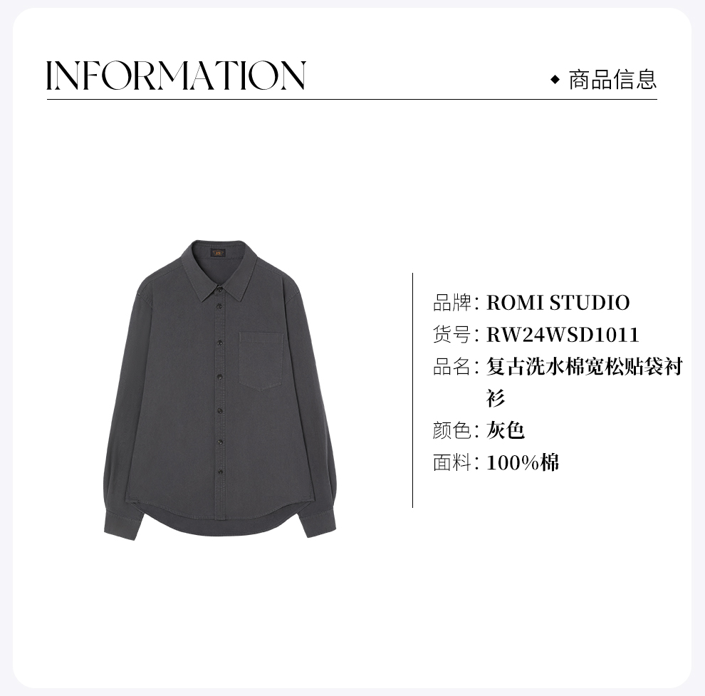 ROMI STUDIO“松弛随性”100%洗水棉复古宽松翻领衬衣 RW24WSD1011