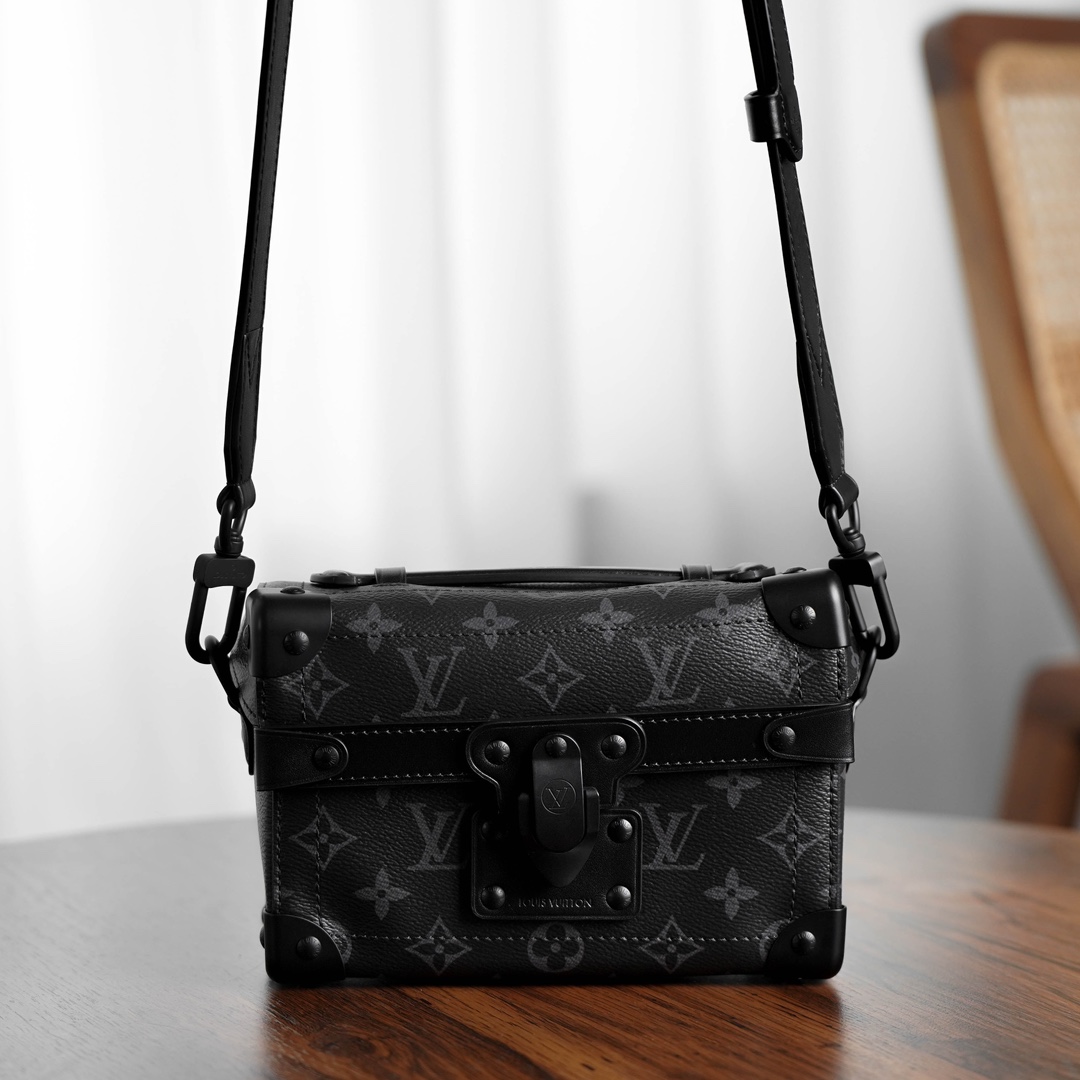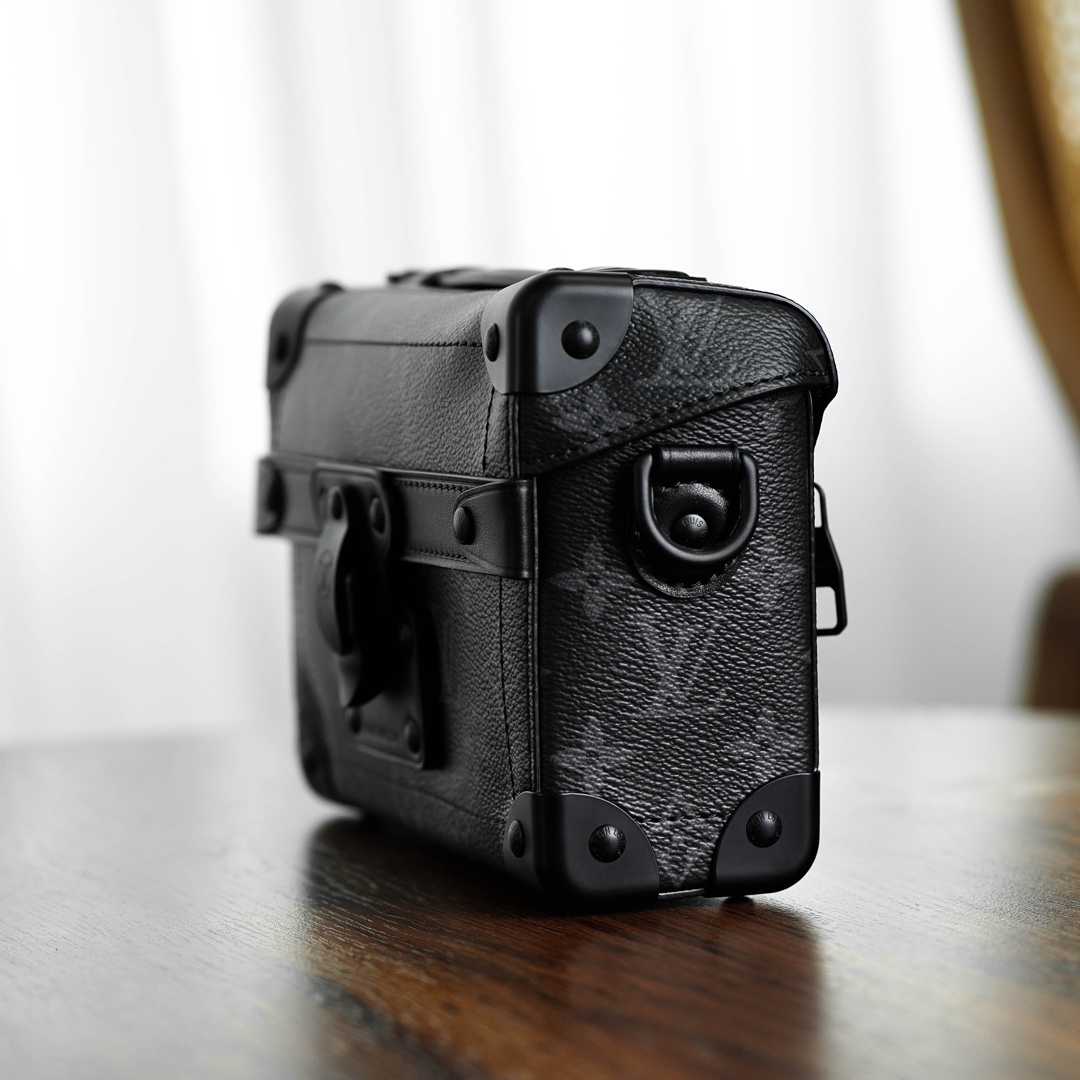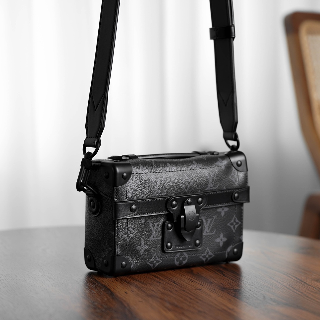全新上线!2024新款 Soul Trunk 男士斜挎包震撼登场。经典软盒包,棱角分明搭配金属包角,演绎百年制箱传统,尽显奢华。金色链条如璀璨星辰,散发时尚气息。反转老花拼色与大气五金配件相得益彰,经典锁扣画龙点睛