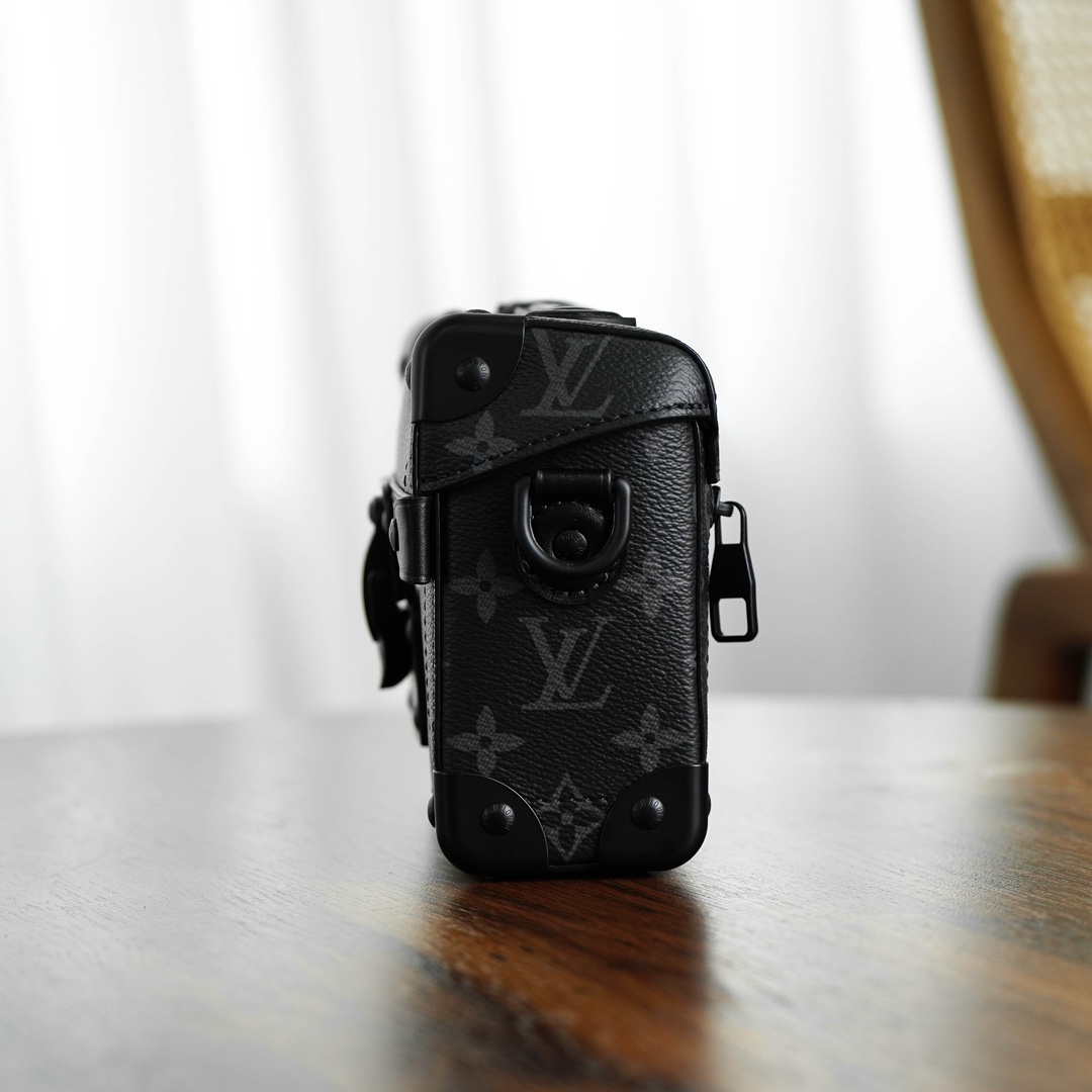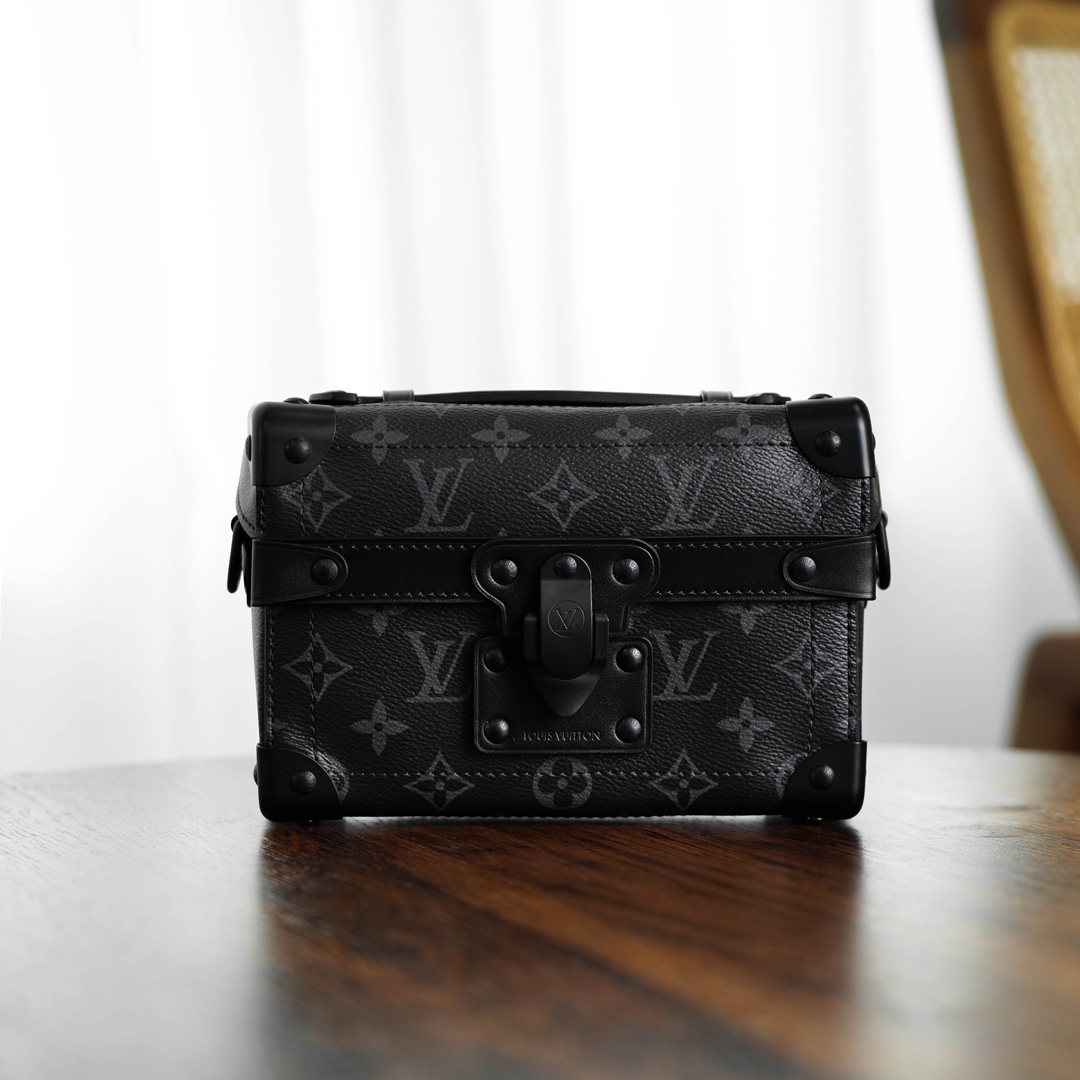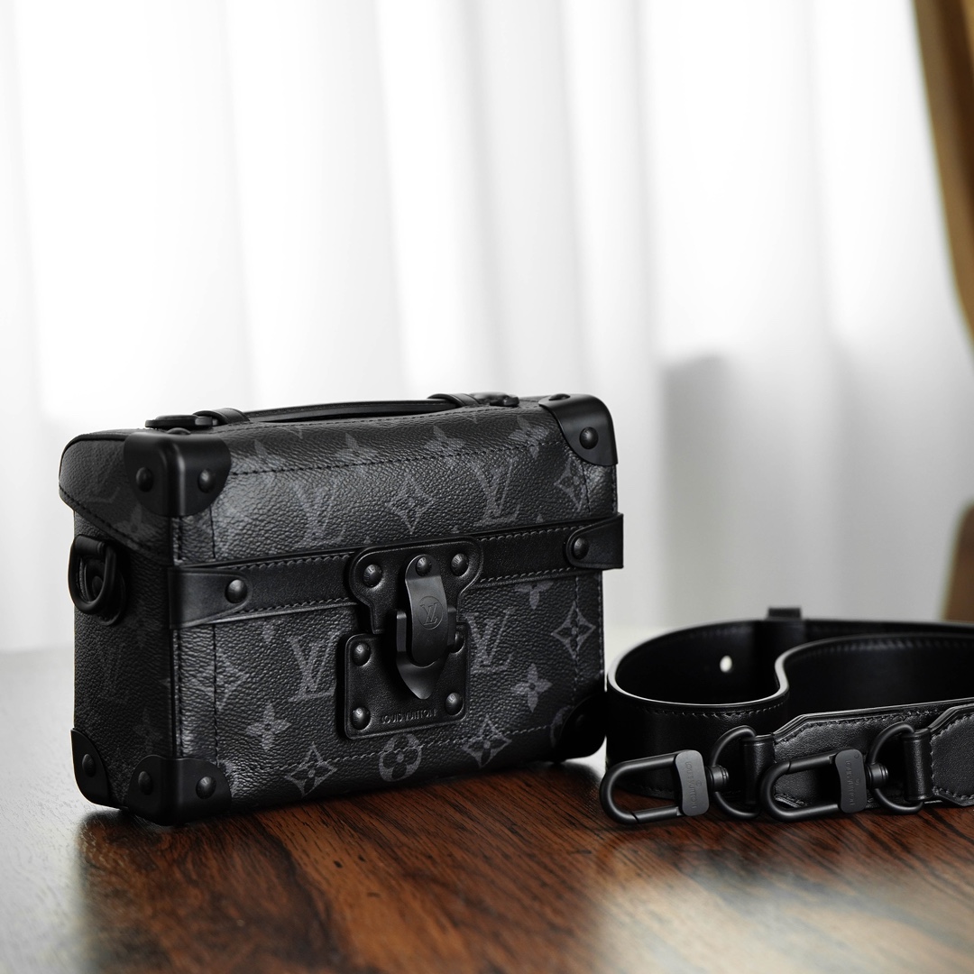 全新上线!2024新款 Soul Trunk 男士斜挎包震撼登场。经典软盒包,棱角分明搭配金属包角,演绎百年制箱传统,尽显奢华。金色链条如璀璨星辰,散发时尚气息。反转老花拼色与大气五金配件相得益彰,经典锁扣画龙点睛