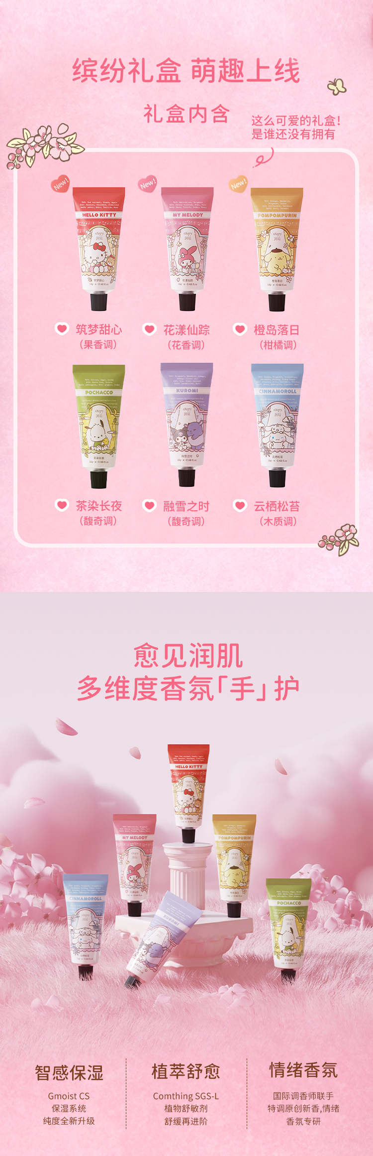 roopy润培x三丽鸥家族花园馥奇香氛植物精粹护手霜礼盒