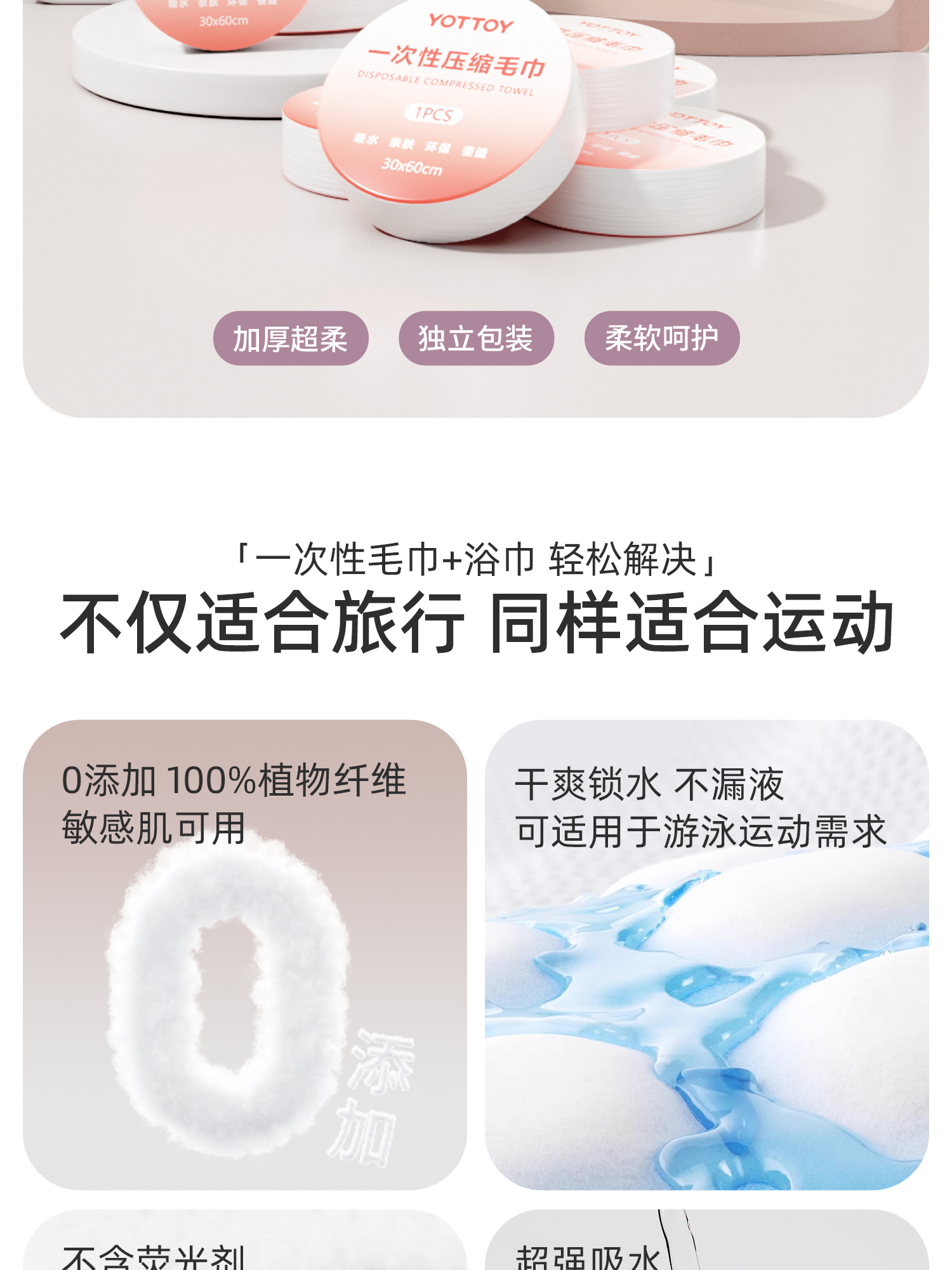 压缩洗脸巾【YOTTOY】一次性运动浴巾毛巾压缩洗脸巾用品独立包装加厚加大便携